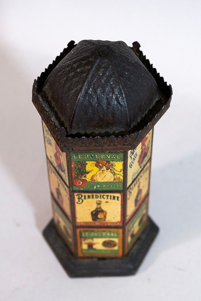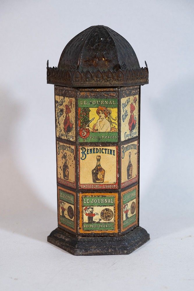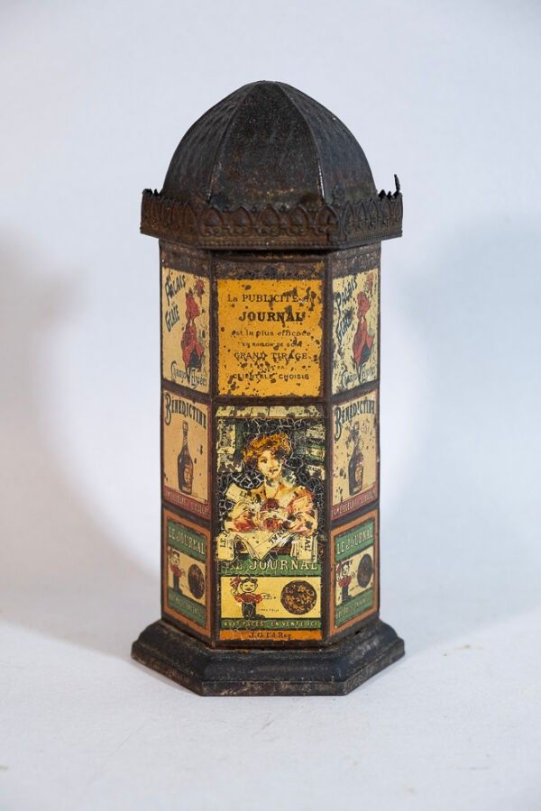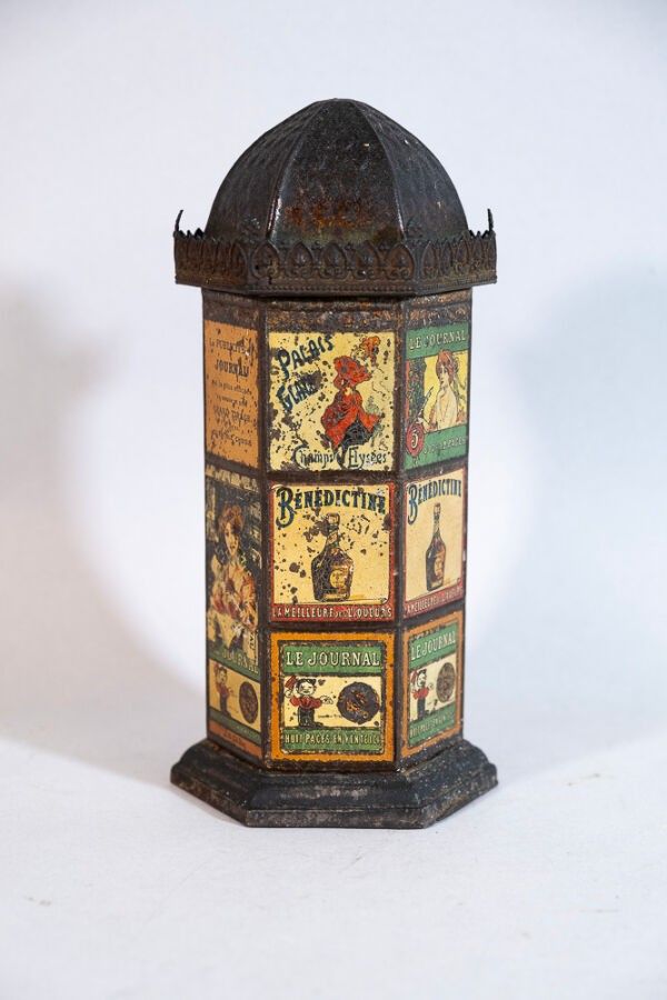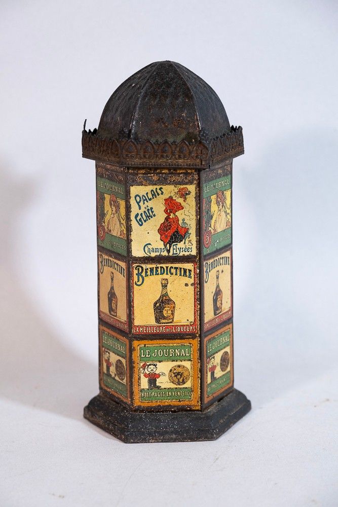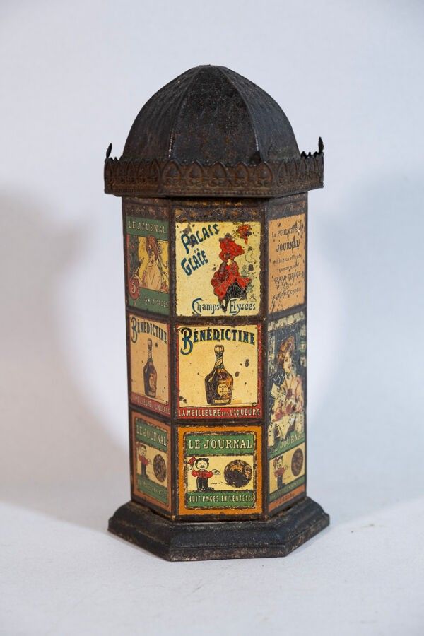 Very rare kiosk in the form of a Morris column in lithographed sheet metal circa 1894.
