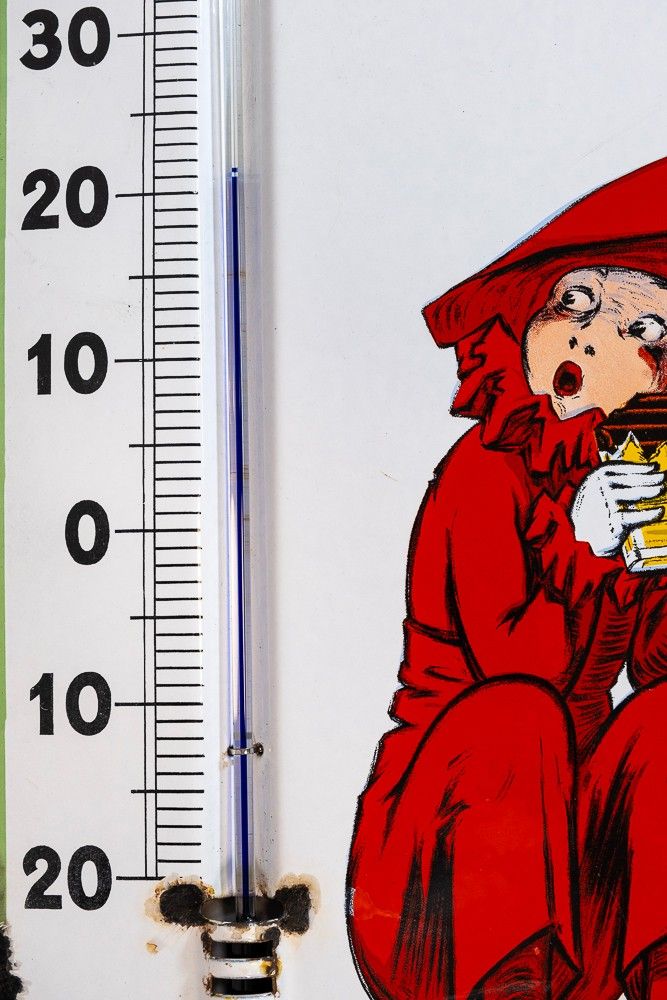 Premium PUPIER CHOCOLATE - Rare flat enamelled rim thermometer with …