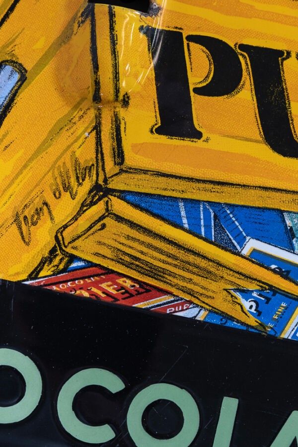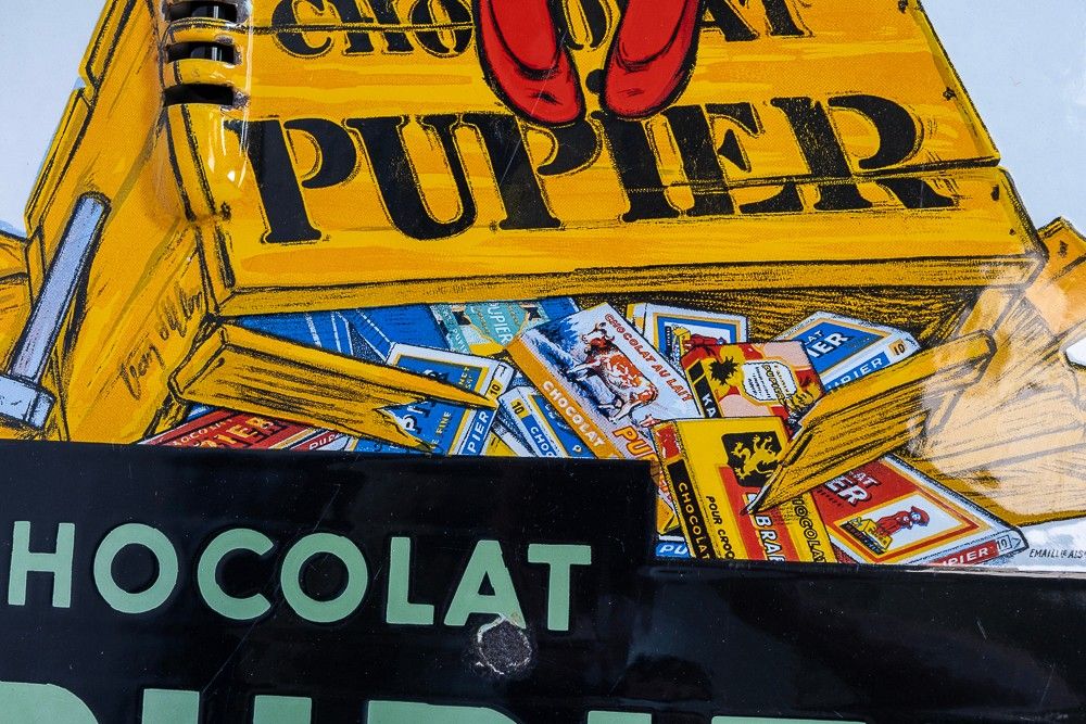 PUPIER CHOCOLATE - Rare flat enamelled rim thermometer with …