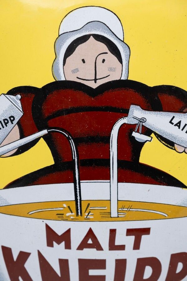 MALT KNEIPP convex enamelled plaque circa 1930, signed "Beuv…