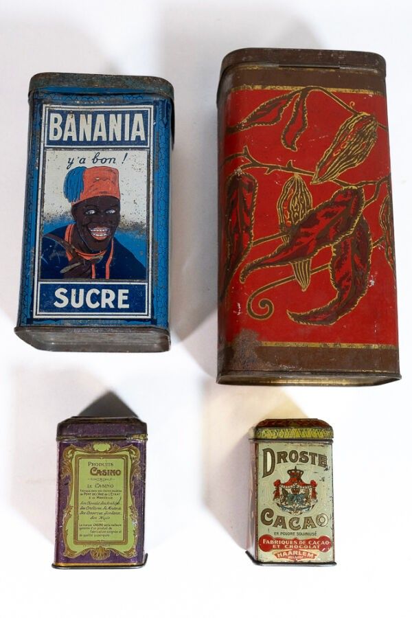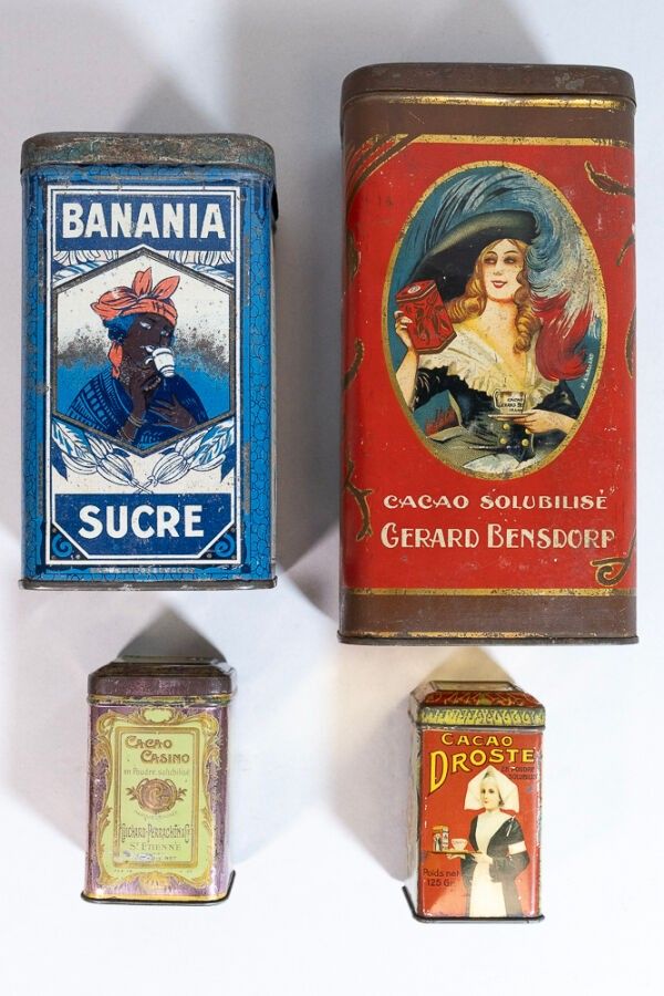 Set of 4 lithographed tin boxes on the theme of CACAO: