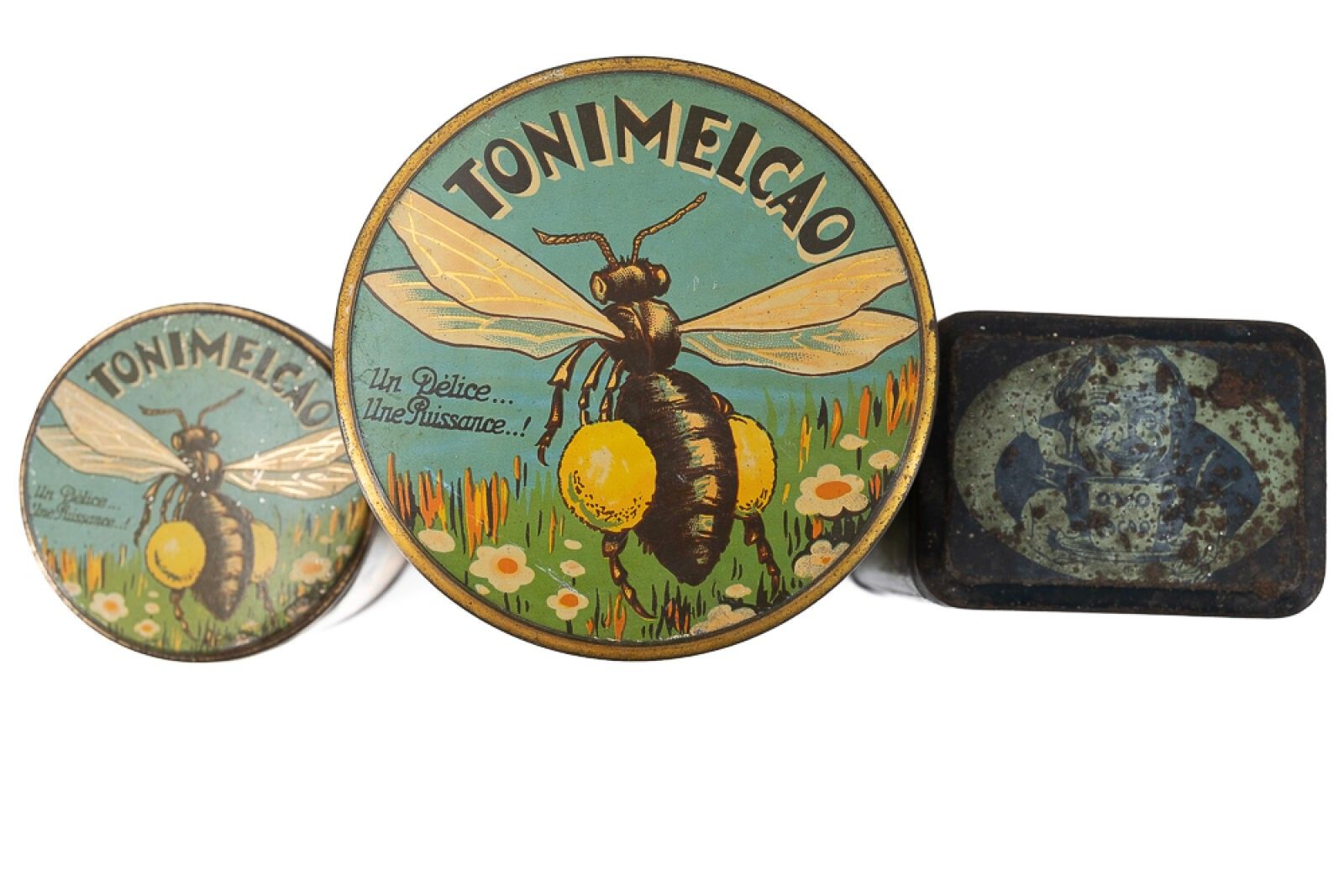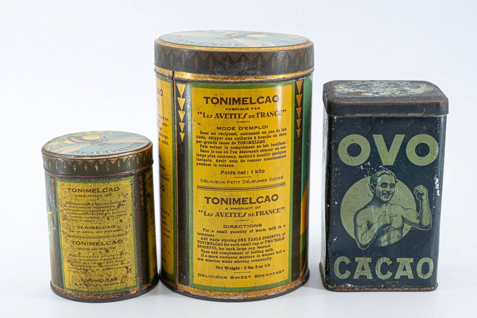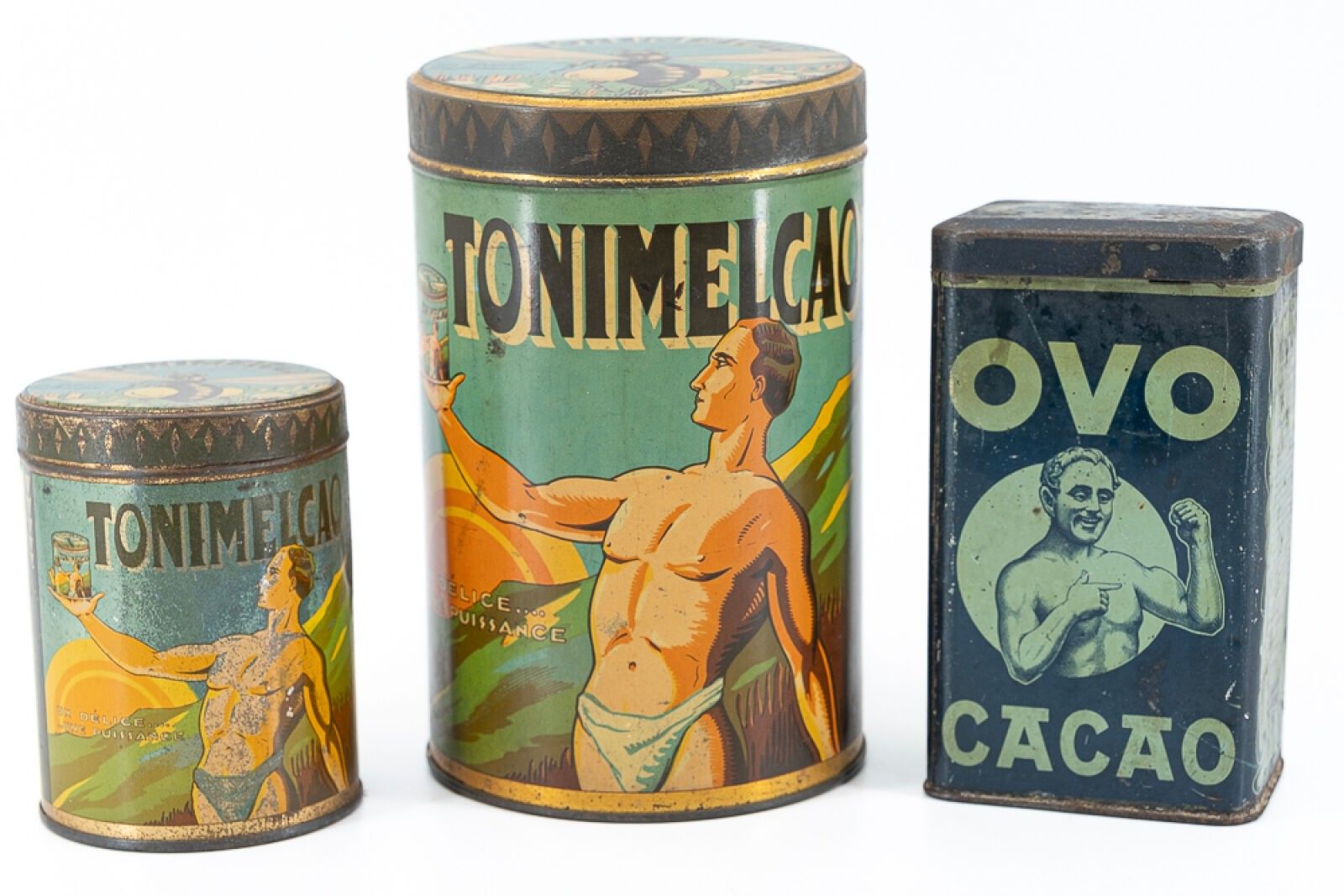 LOT OF 3 BOXES in lithographed sheet metal circa 1920.