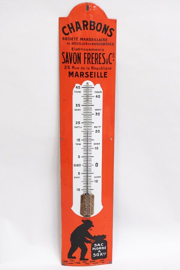 SAVON FRÈRES - COAL - Marseille. Enamelled thermometer circa…