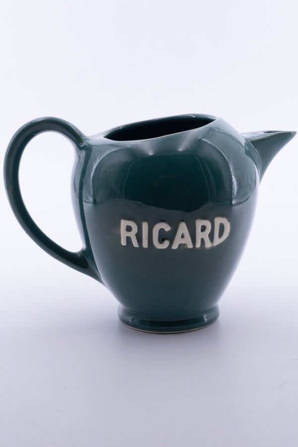 RICARD - Pichet d'anis - circa 1950, In ceramic, small foot version, green colour, double-sided white lettering in relief.
