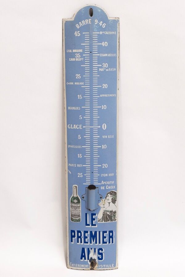 Premium THE FIRST ANISEED - Rare domed enamel thermometer circa 1930…