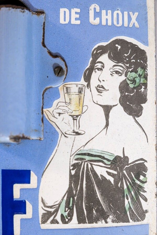 Very good condition, superb colours especially on the woman and the bottle, very good brilliance.relief lettering.capillary missing. A chip at the bottom clip.