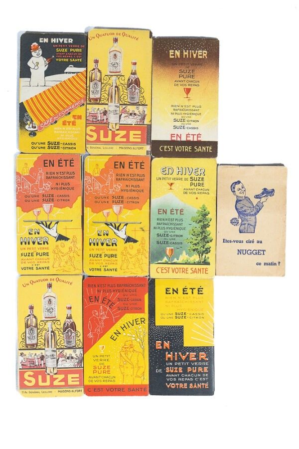 GENTIANE THEME - LOT OF 10 CARNETS: 9 SUZE and 1 Nugget shoe polish. Circa 1930-40.