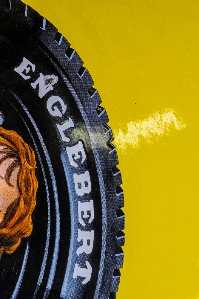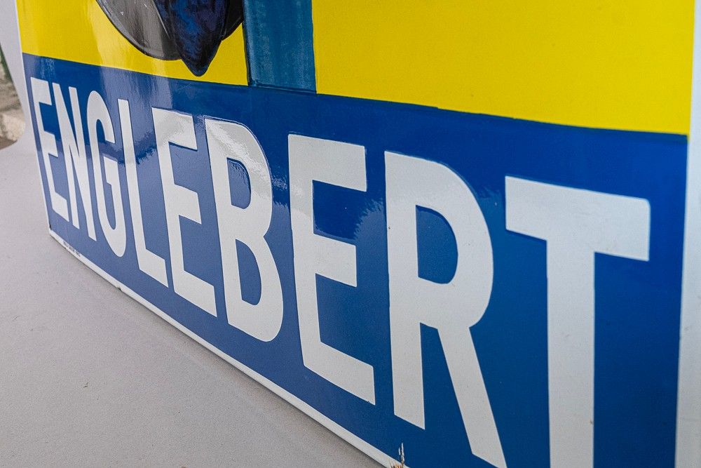 ENGLEBERT tyres - Very rare flat enamelled plate with rims, …