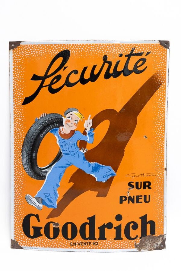 Premium GOODRICH Tyres circa 1925 - Rare single-sided enamelled plaq…