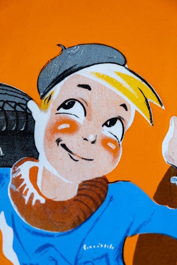 80 x 60 cm. "Emaillo - engraving / Émaillerie Alsacienne de Strasbourg". Illustration of the garage owner.