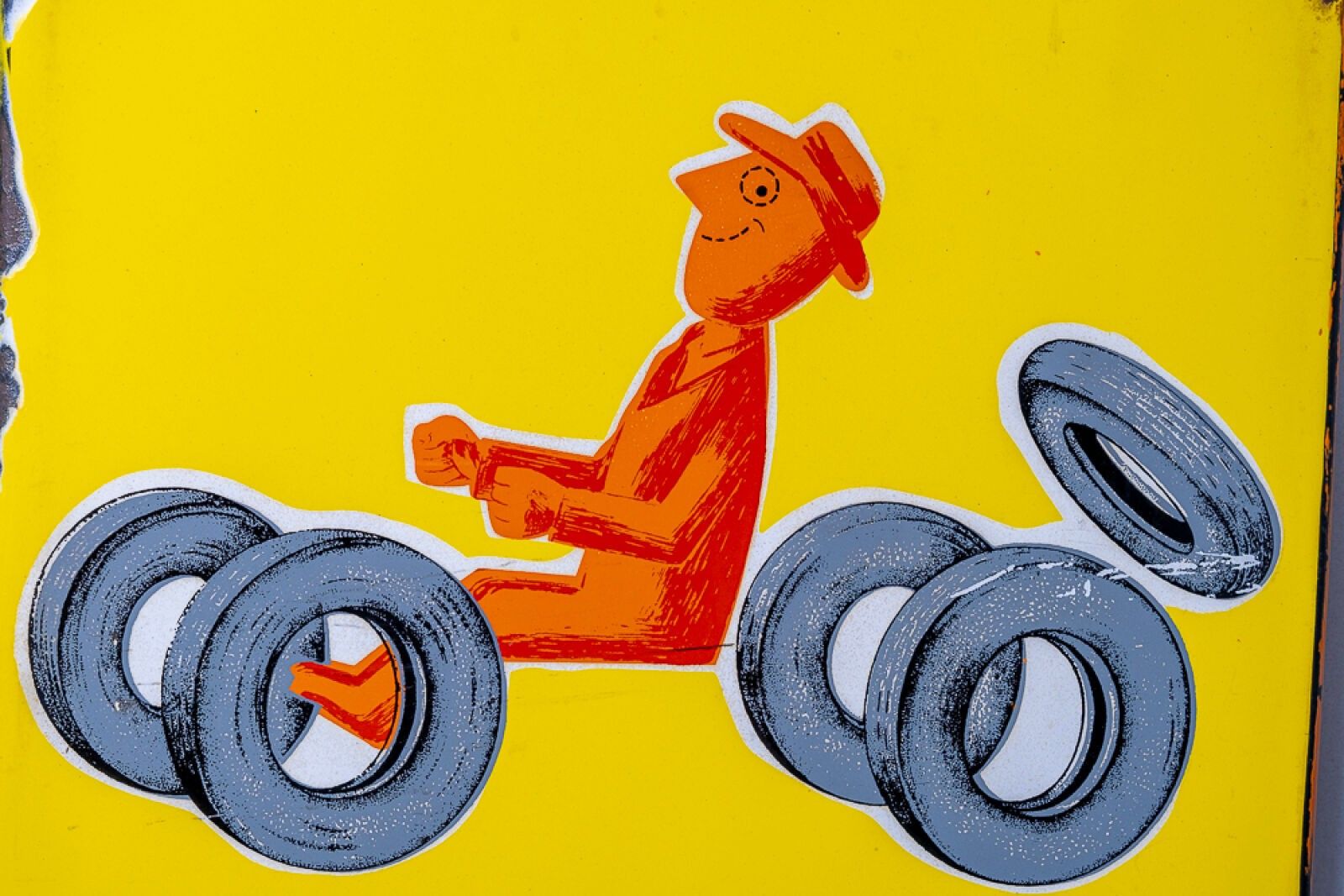 Premium DUNLOP tyres - circa 1950. Flat enamelled plate with rim, ve…