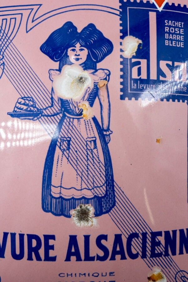 ALSATIAN YEAST - THE STAMP - Rare domed enamelled plaque cir…