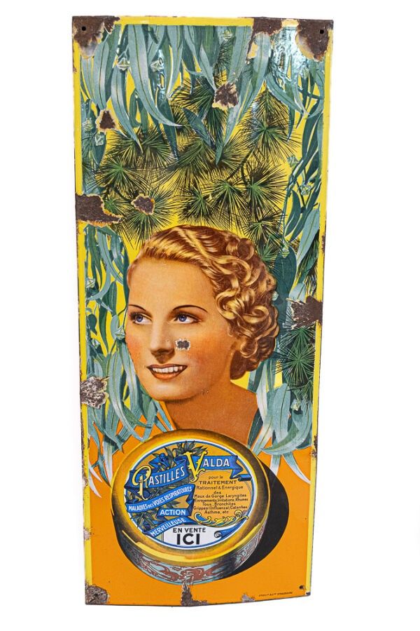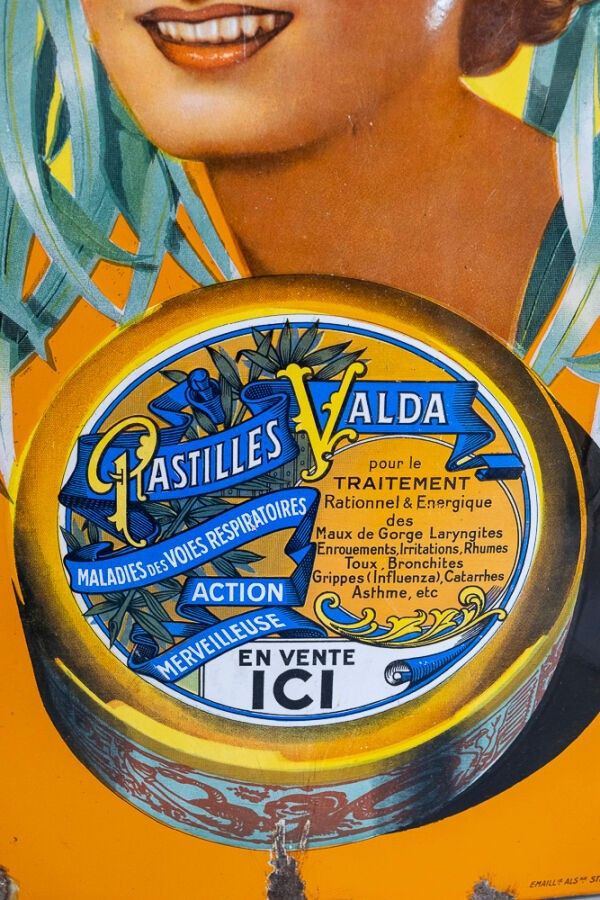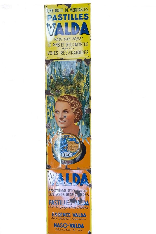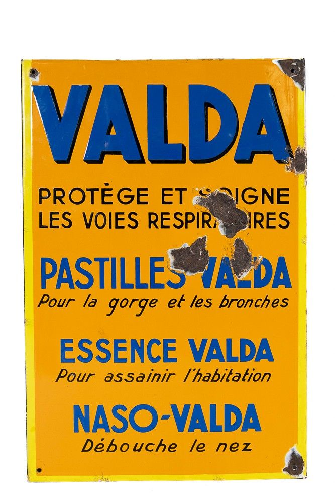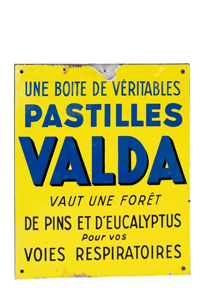 PASTILLES VALDA - Flat enamelled plate in three parts, circa…