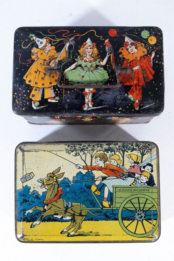 CHILDREN'S THEME - LOT OF 2 BOXES in lithographed sheet metal circa 1930.