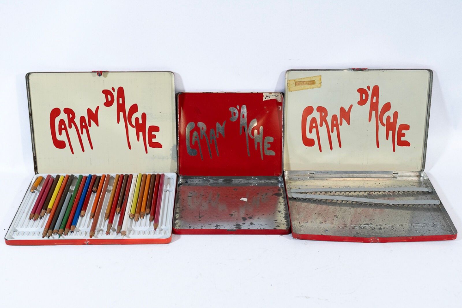 CARAN D'ACHE PENCILS lot of 3 TIN BOXES representing Swiss m…