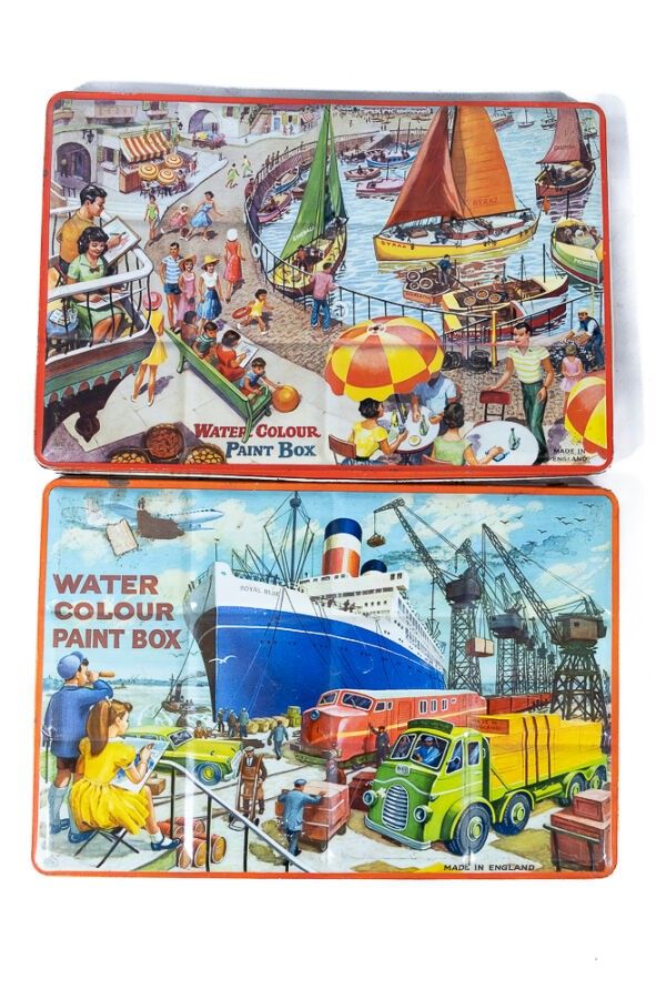 PAINTING - LOT OF 2 LARGE English tin boxes, circa 1960-70.