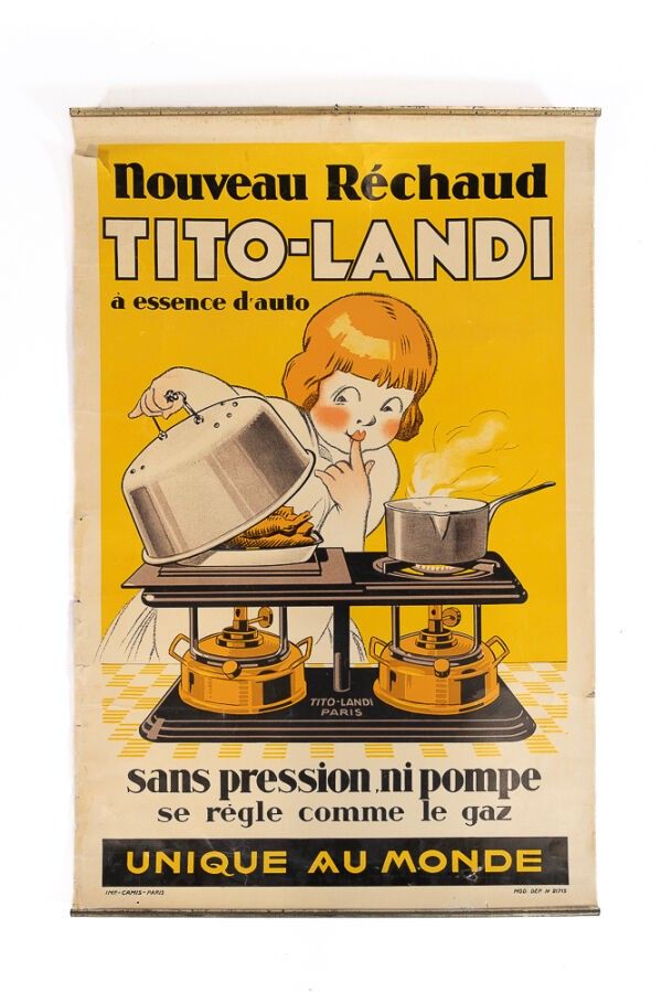 Lamps and stoves made in France by Tito-Landi (1873-1947), from 1898 until the end of the 1970s. Agusto Tito Landi was a Spanish citizen from San Sebastian who is buried in the Père-Lachaise cemetery.