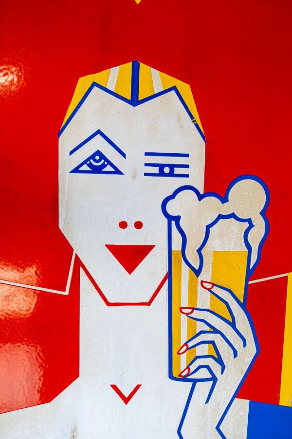 The winking Alsatian woman was designed by André Stouls in 1927 (source: brasserielutterbach.fr).