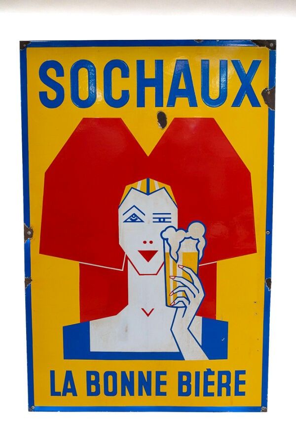 Premium BIÈRE DE SOCHAUX - "good beer A rare flat enamelled plaque w…
