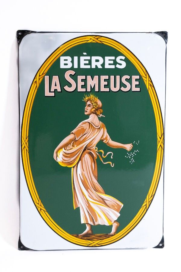 Premium LA SEMEUSE BEERS - Flat enamelled plate with ears circa 1950…