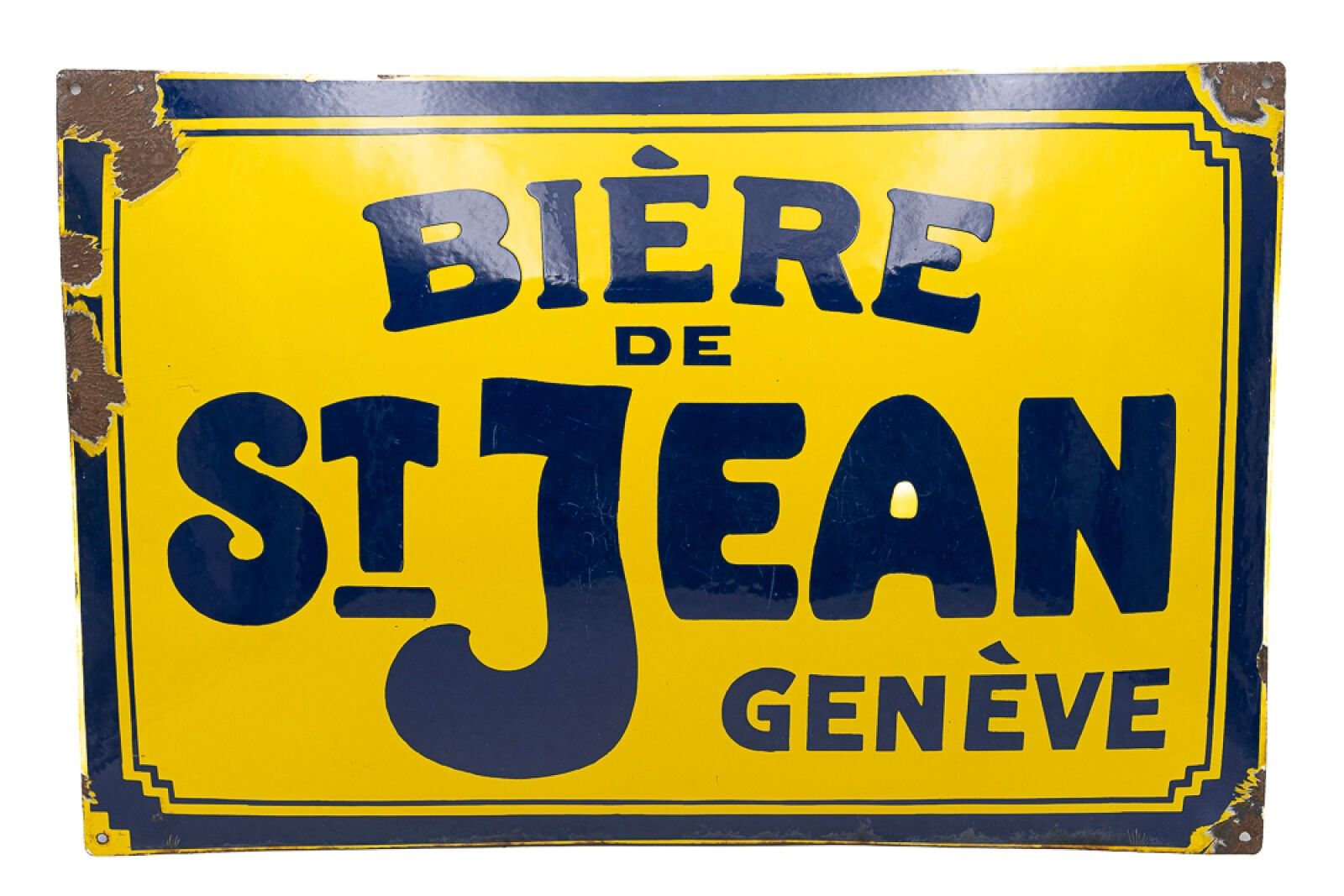 Premium BIÈRE DE ST JEAN - Rare domed enamelled plaque circa 1910
