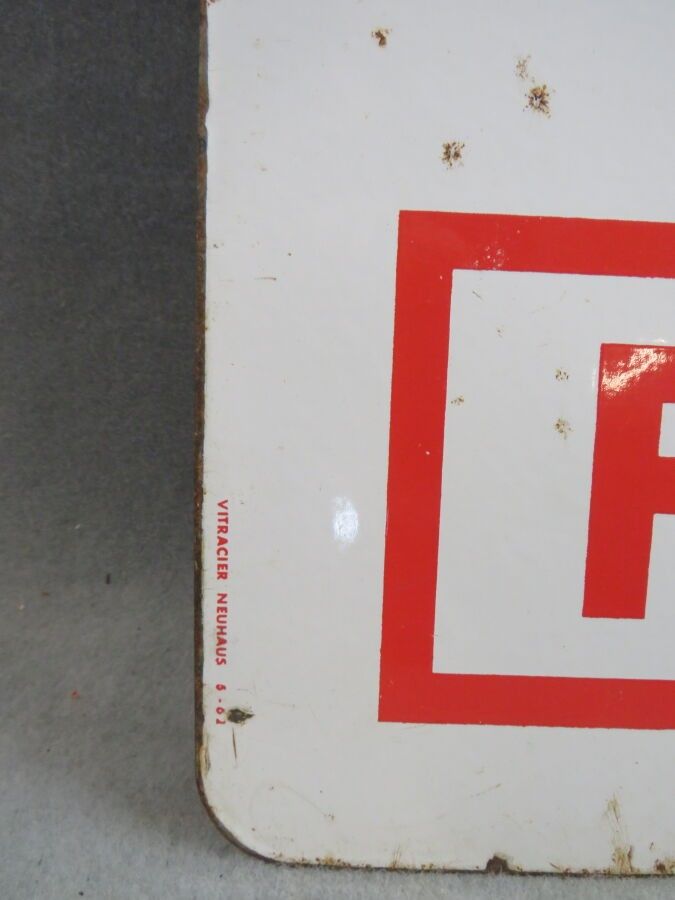 BP FUEL, Advertising plaque in double-sided enamelled sheet metal. Neuhaus stained glass. Chips, scratches. Dimensions: 55 x 61.5 cm.