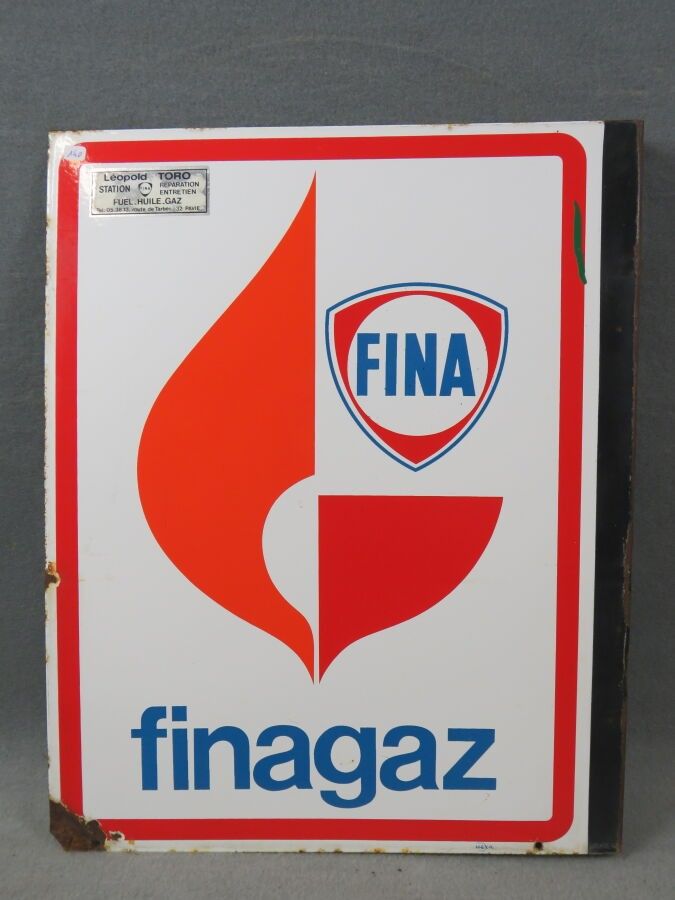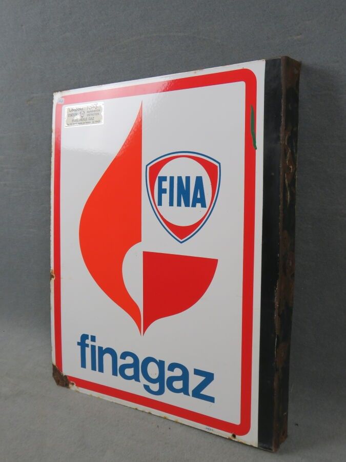 FINA FINAGAZ. Advertising plate in enamelled sheet metal, re…