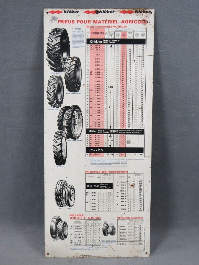 KLEBER, Advertising plate for inflating tyres for agricultur…