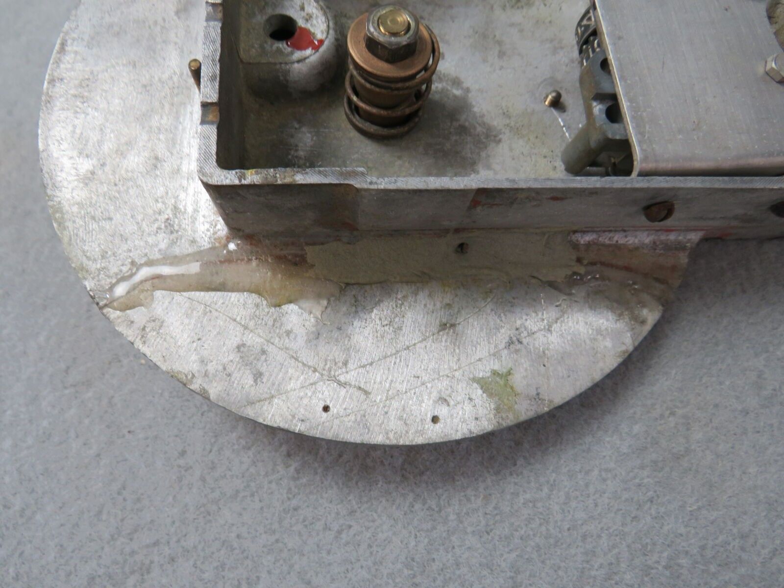 ARBOX, Aluminium petrol pump dial with small BP badge in lithographed sheet metal. Broken, glued back together. Size : 23 x 22 cm