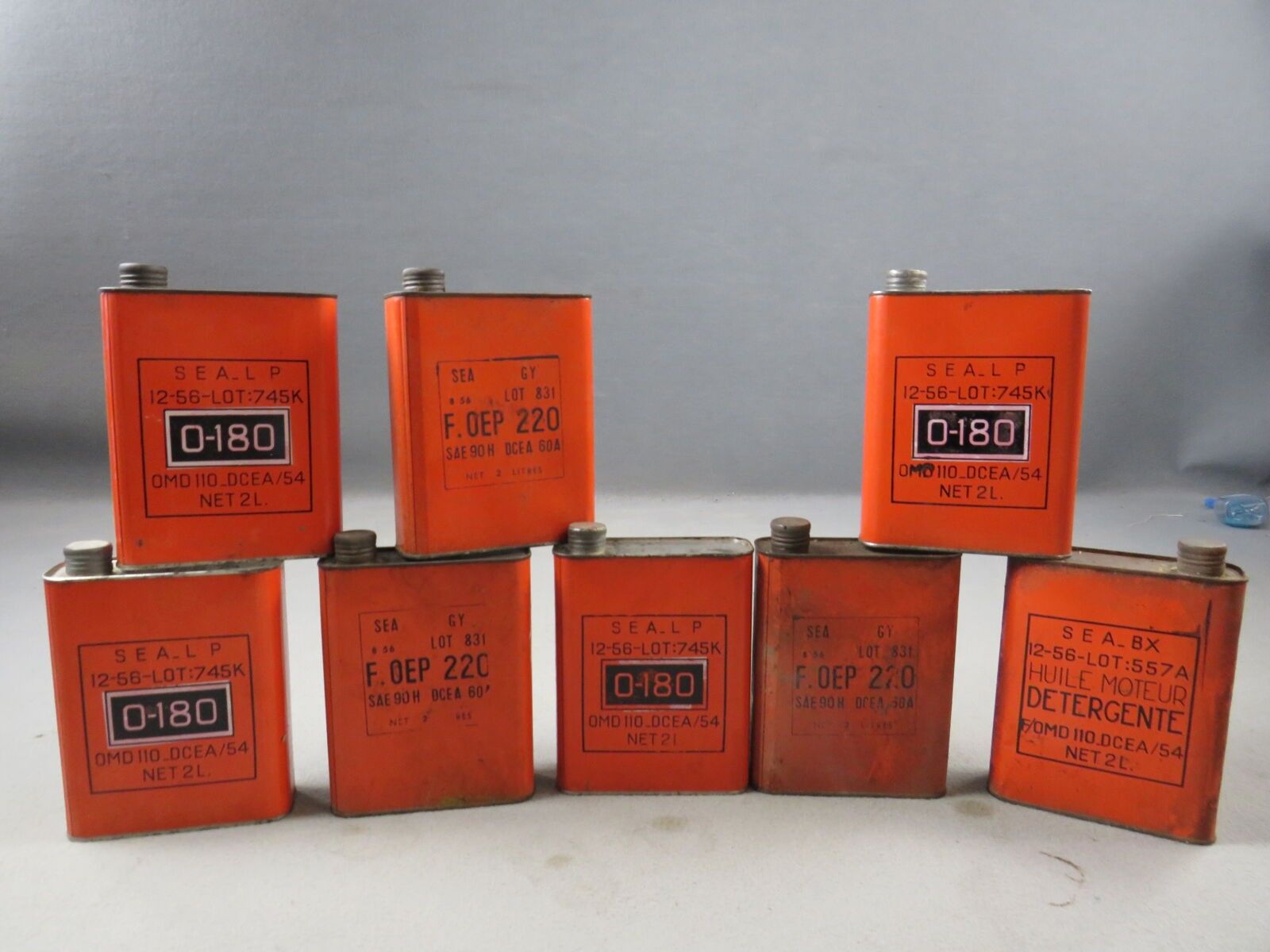 Reunion of 8 x 2-litre cans of military oil. Accidents