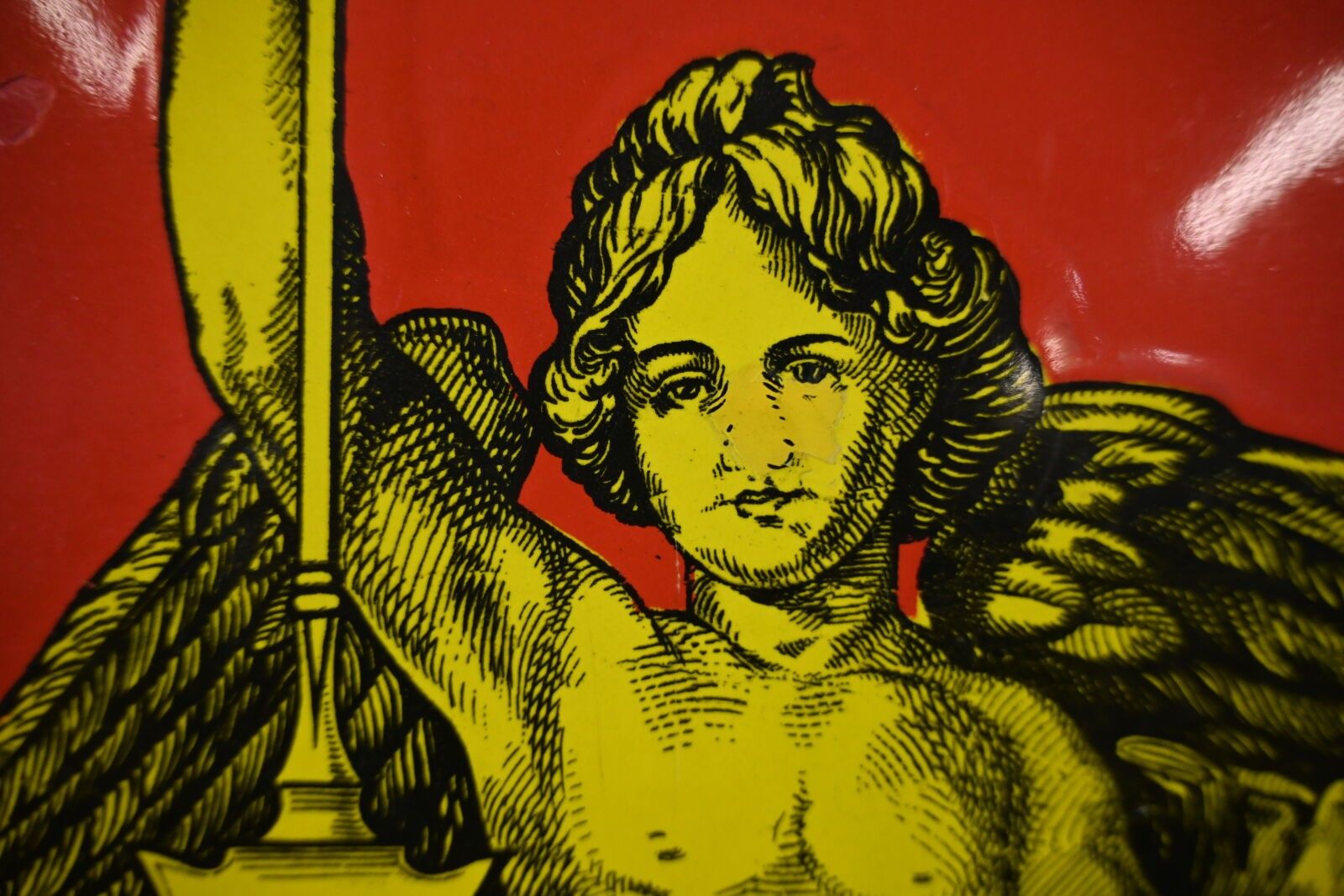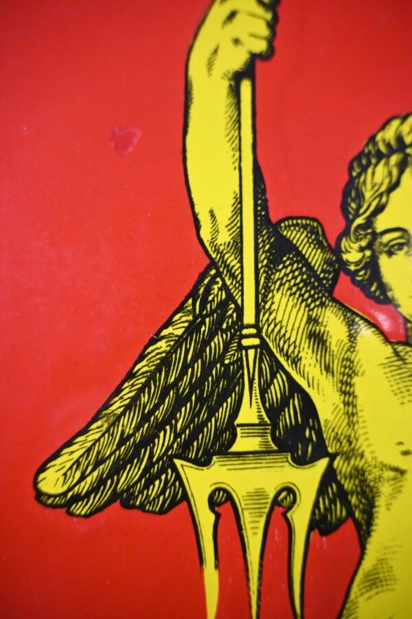 Advertising art, enamelled plates and lithographed sheets, automobilia, advertising objects, oil cans.