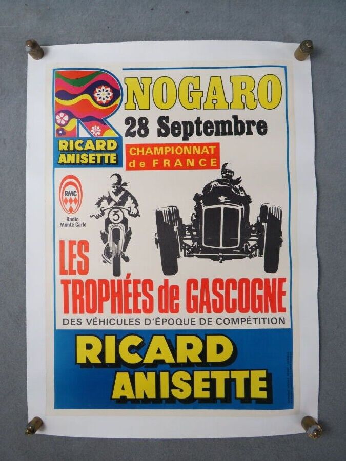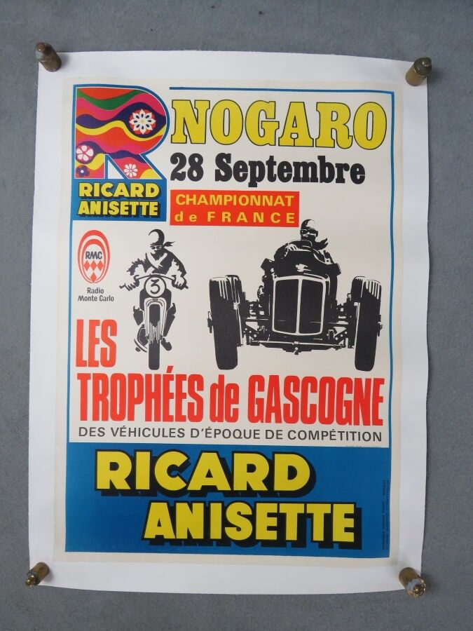 RICARD Anisette, Poster for Les Trophées de Gascogne de Nogaro on 28 September. Framed. Accidents. Printed by Ricard Marseille. Dimensions : 64,2 x 56 cm