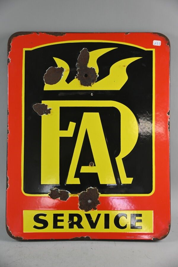 FAR Service. Advertising plate in enamelled sheet metal, rec…