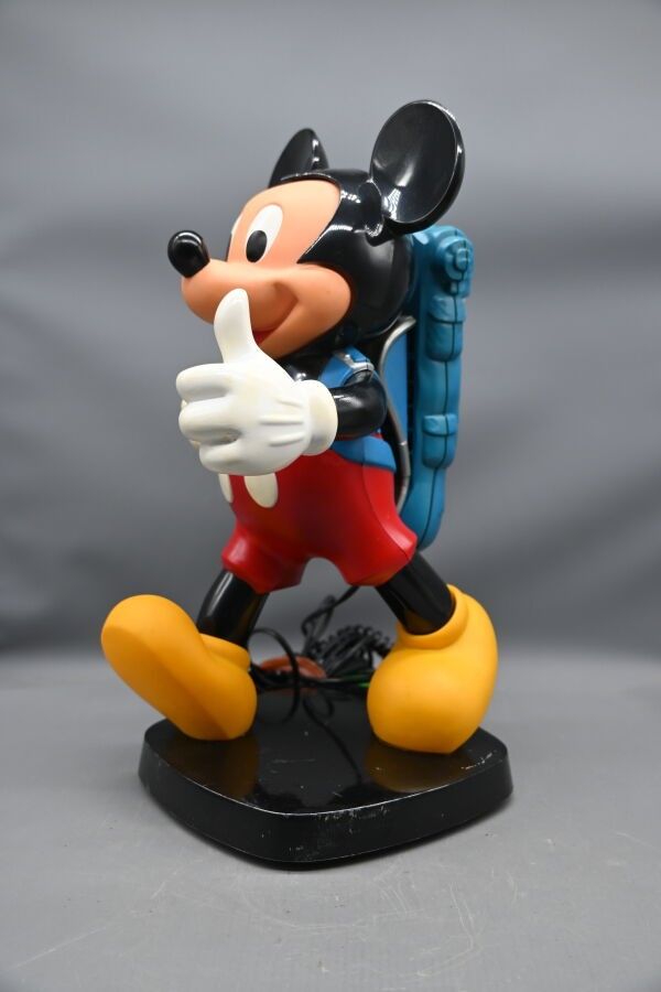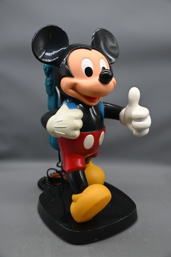 TYCO, Fixed telephone representing Mickey Mouse, the backpack being the telephone. Circa 1980. Not tested. Dimensions: h. 35 cm. Wear from use.