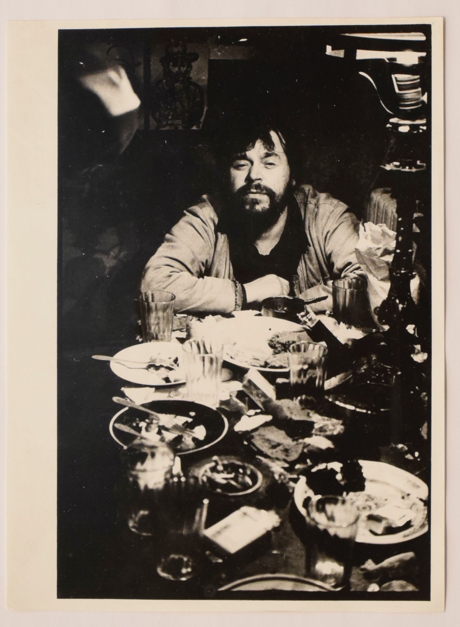 Enclosed is a photograph, portrait of the artist at table, 245 x 180 mm