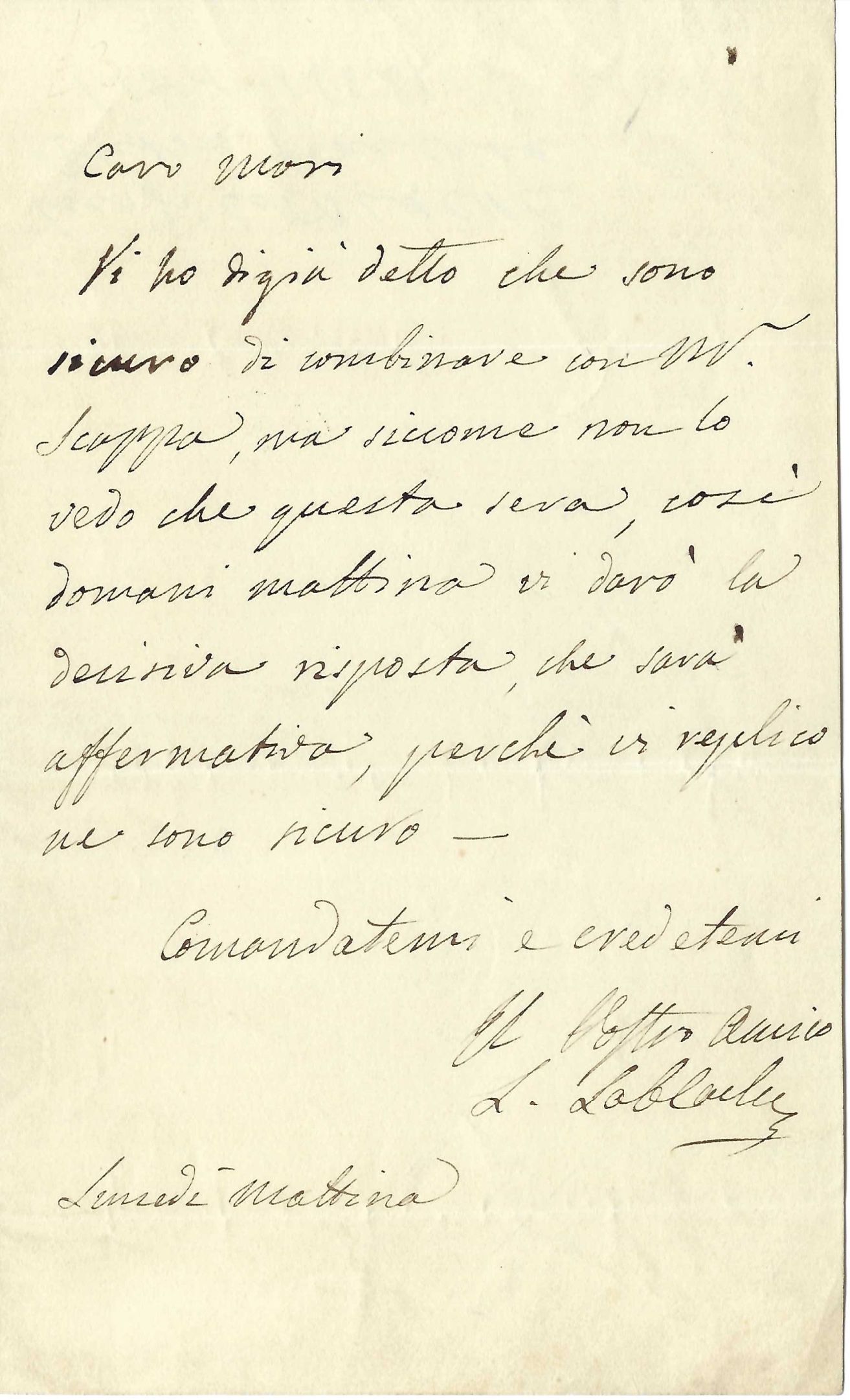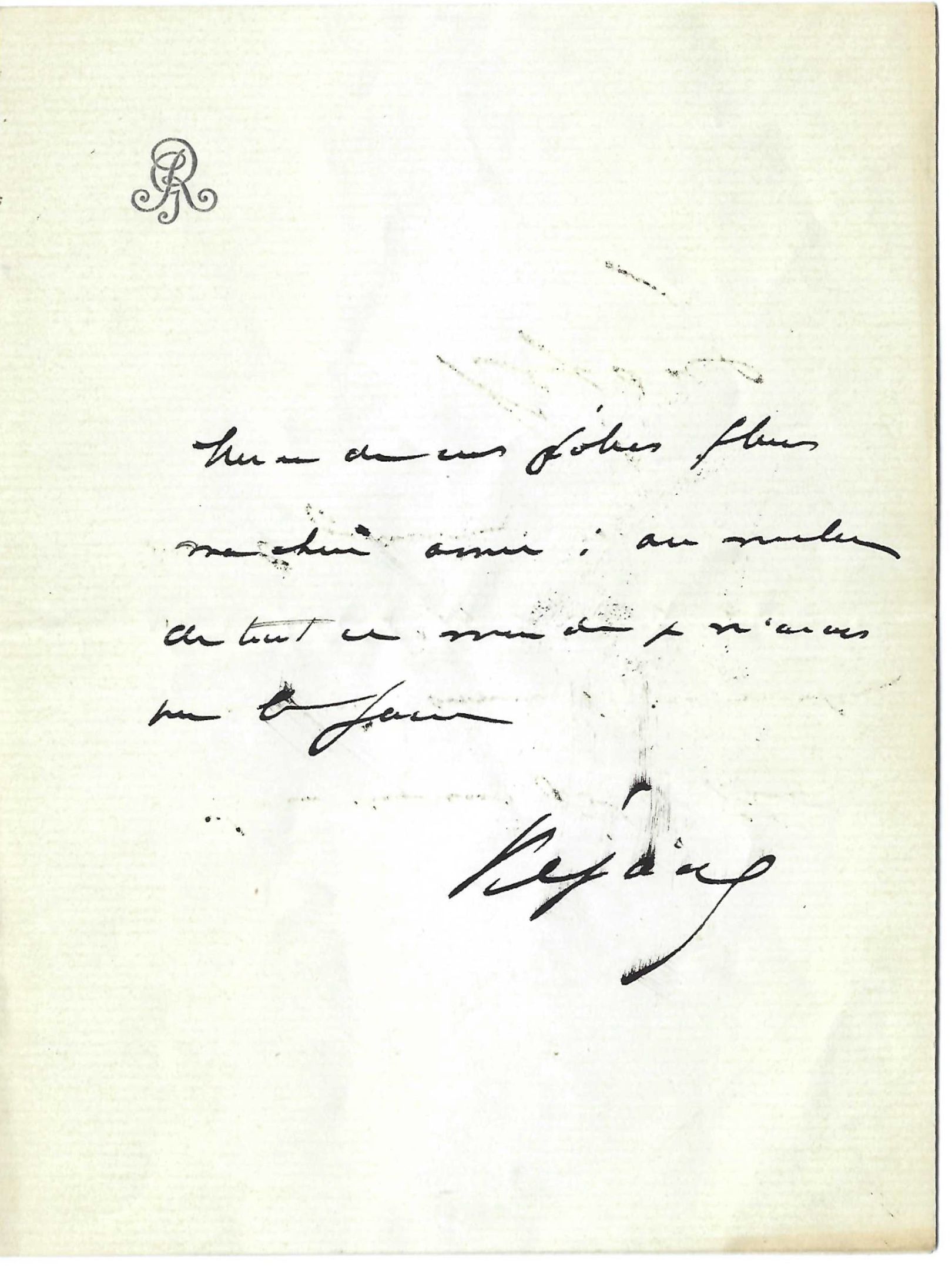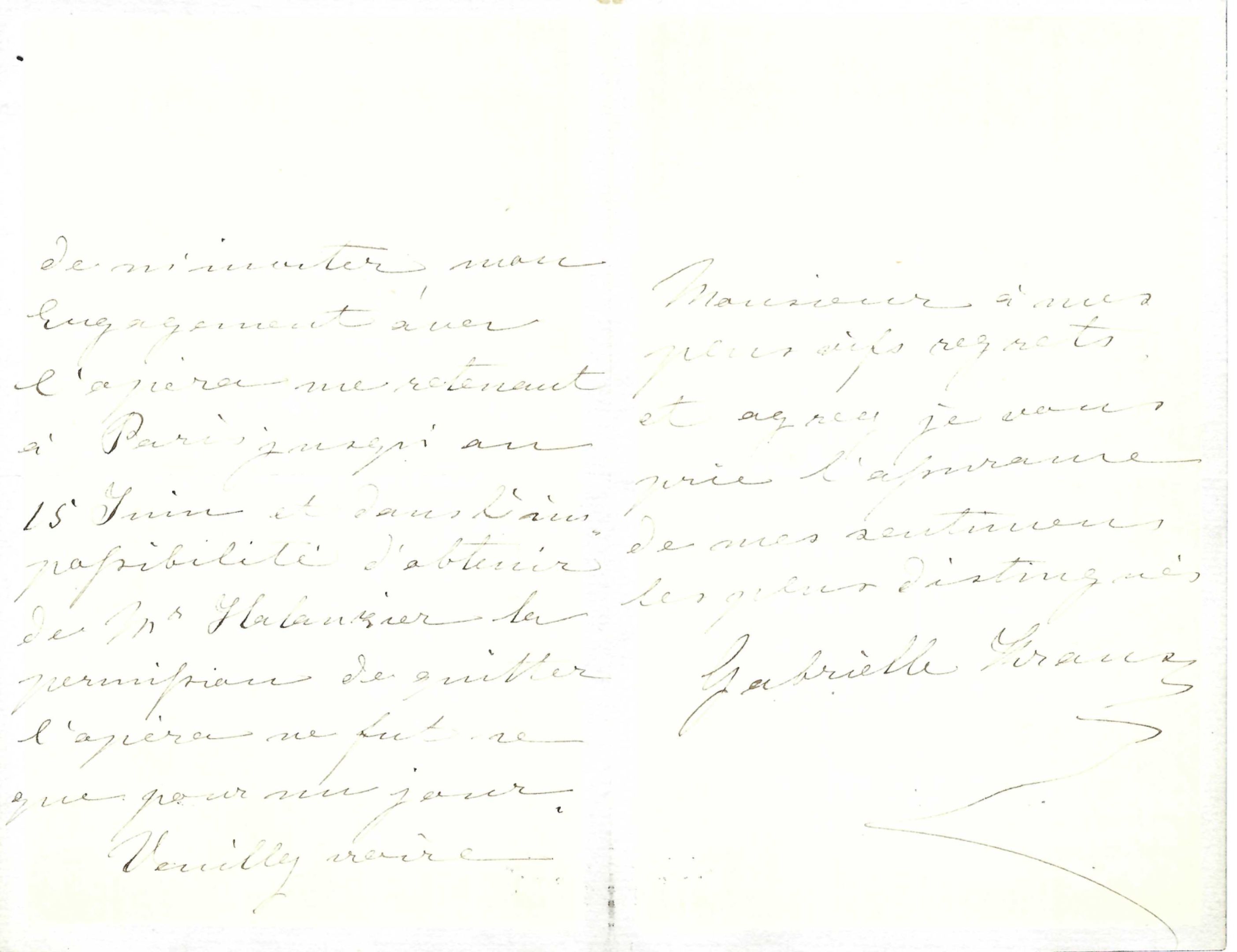 An interesting collection of letters from foreign artists who performed in Russia at different times. It reflects the unique spirit of openness of the Russian theatre towards foreign singers and actors, the wide range of opportunities open to them and the importance of international contacts for the development of the world classical stage. SIX LAS and one typescript letter signed by: actor Coquelin cadet; soprano G. Krauss; basso L. Lablanche; soprano C. Novello; actress Réjane; pianist, composer and singer Pauline Viardo; conductor A. Vizentini. In French, various formats, 1855-1887.