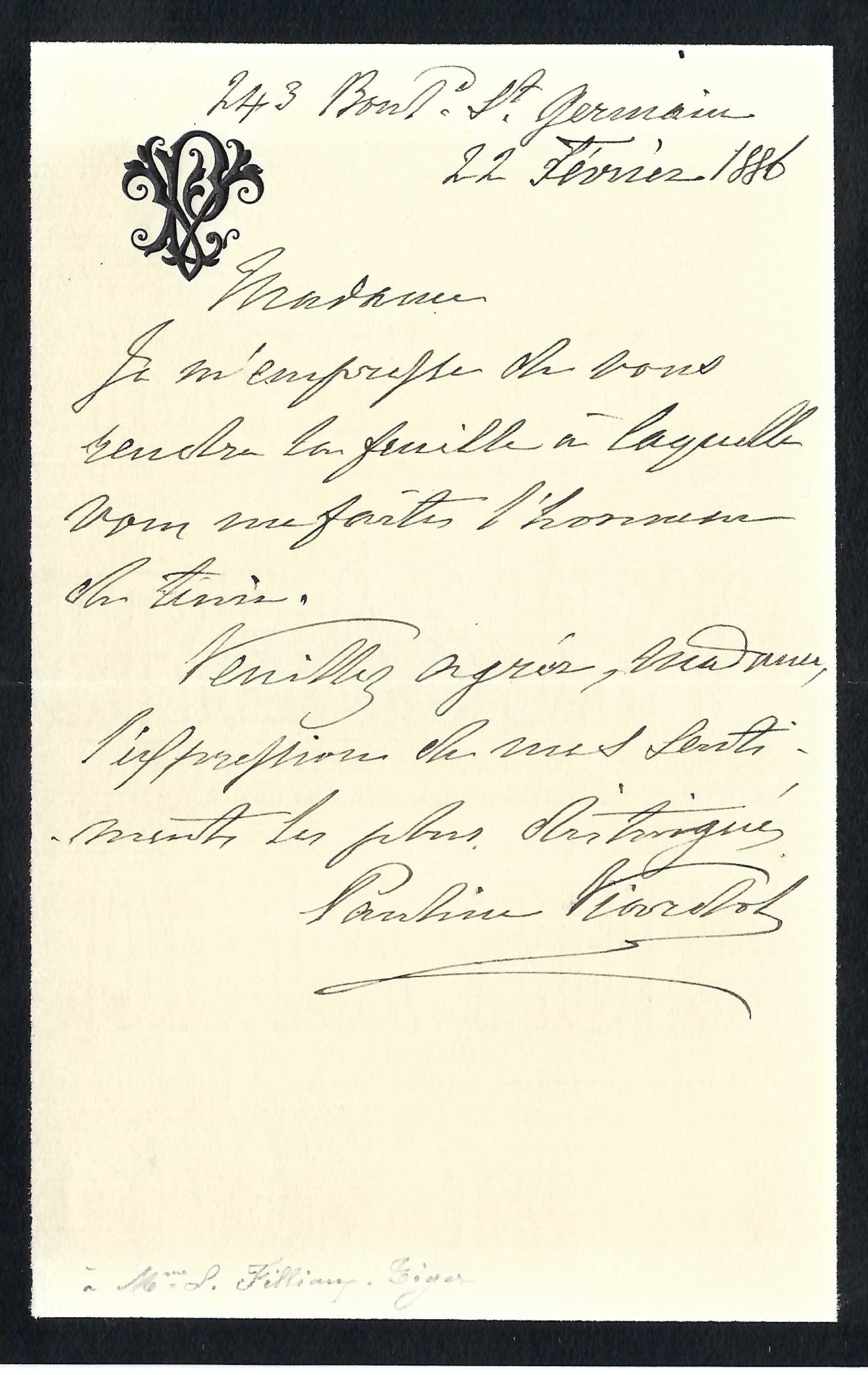 Интересный ЛОТ из писем иностранных артистов, выступавших в России в разное время. Отражает уникальный дух открытости русского театра к иностранным певцам и актерам, широкий спектр возможностей для их работы и важность международных контактов для развития мировой классической сцены. Шесть писем автографов с подписями и одно письмо машинопись с подписью: актер Кокелан младший; сопрано Г. Кросс; бас Л. Лабланш; сопрано К. Новелло; актриса Режан; пианистка, композитор и певица Полина Виардо; дирижер А. Визеттини. На французском, разного размера, 1855-1887 гг.
