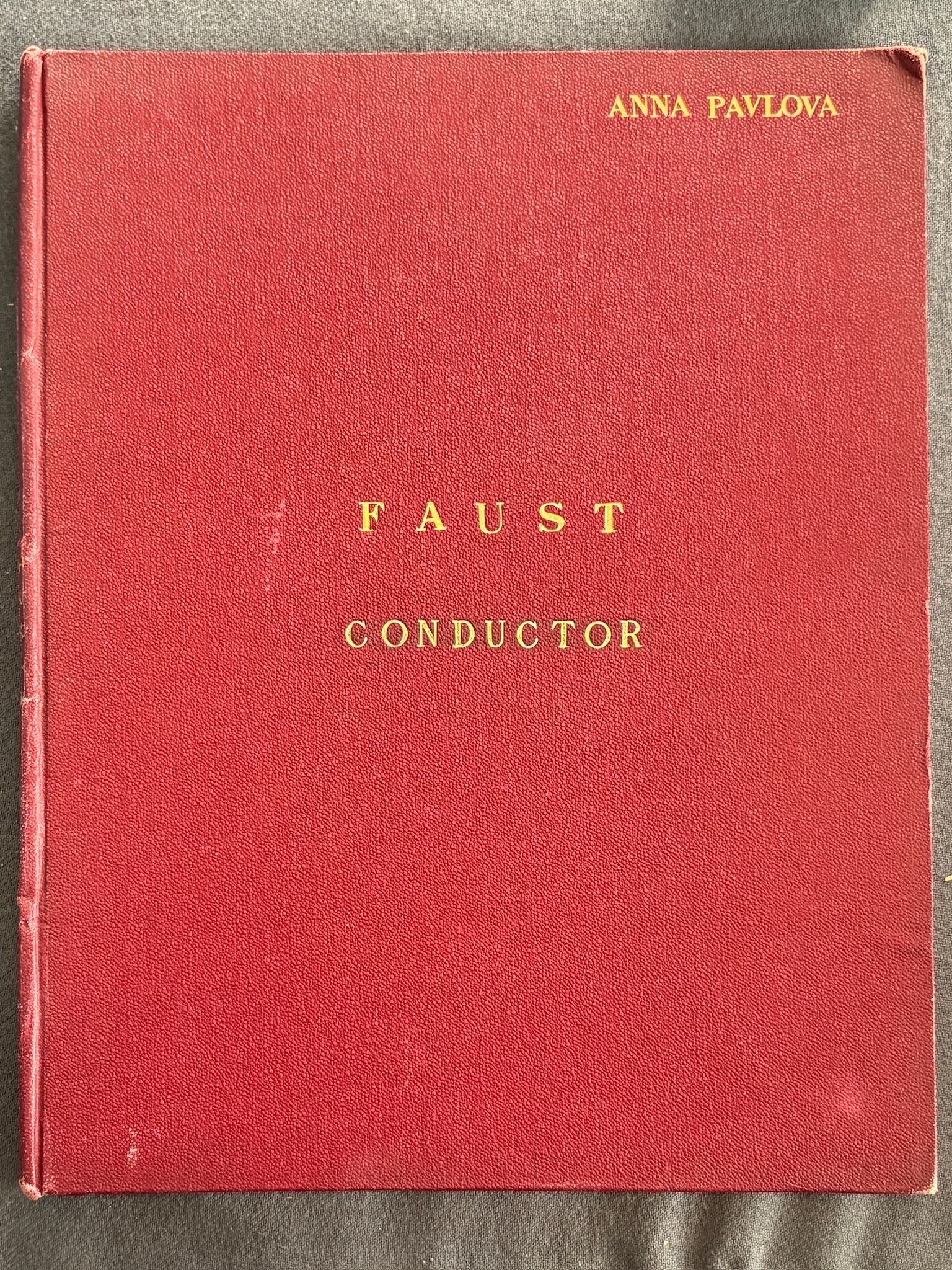 - Faust. Conductor. Printed score, ed. Bote & G. Boek, Berlin. Without title page, 28 pp. in-folio, numerous annotations and corrections, label stating "Property of Anna Pavlova", titles of ballet and parts filled in by hand. Handwritten annotation "B. Toporkoff 2/VII/1930" on the label.