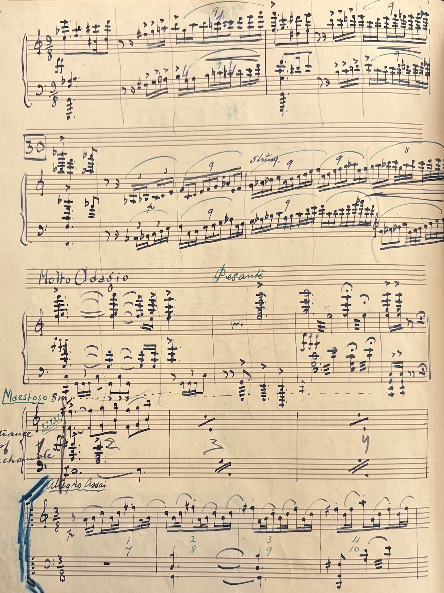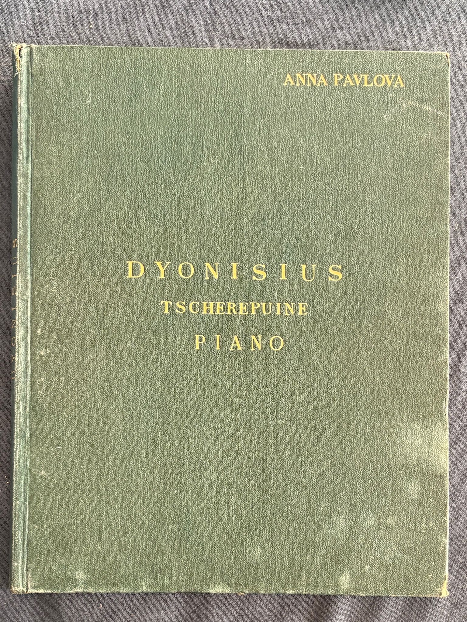 - Dionysius piano, на музыку Александра Черепнина. Нотная партитура скопирована вручную, 33 нумерованных страниц, рукописные отметки и зачеркивания. 30.5 х 24 см., общ.хор.сост. (потертости переплета).