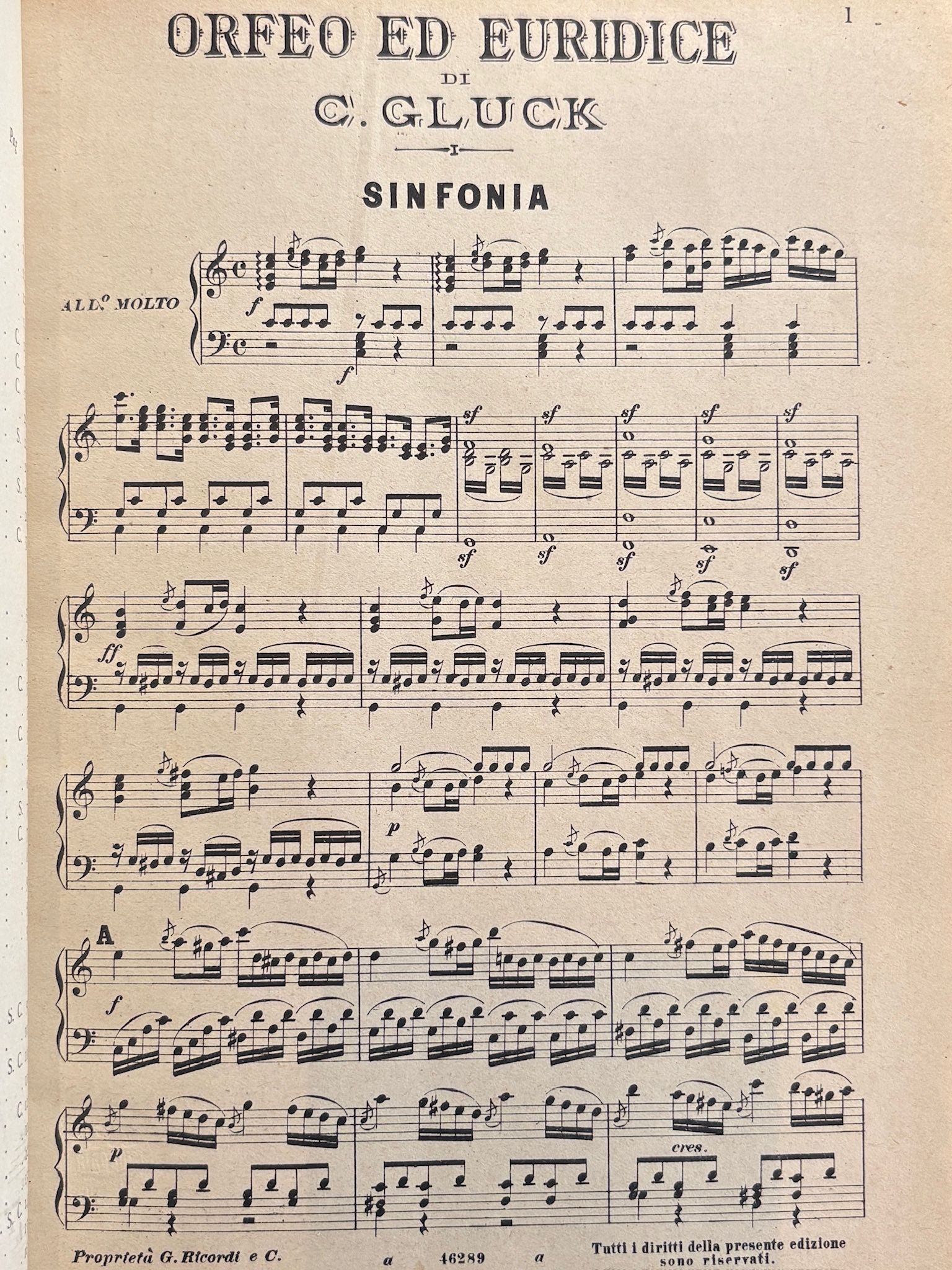 - Orfeo (Орфей) на музыку Кристофа Глюка. Печатная партитура, изд. G.Ricordi & Co. 170 стр., 27 х 20 см., экслибрис "Bonynge Sutherland Collection". В сост. (потертости переплета).