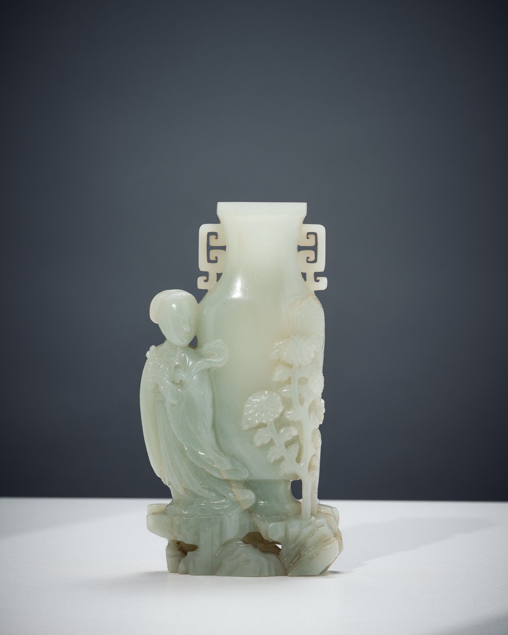 Beautiful celadon jade vase, baluster shape