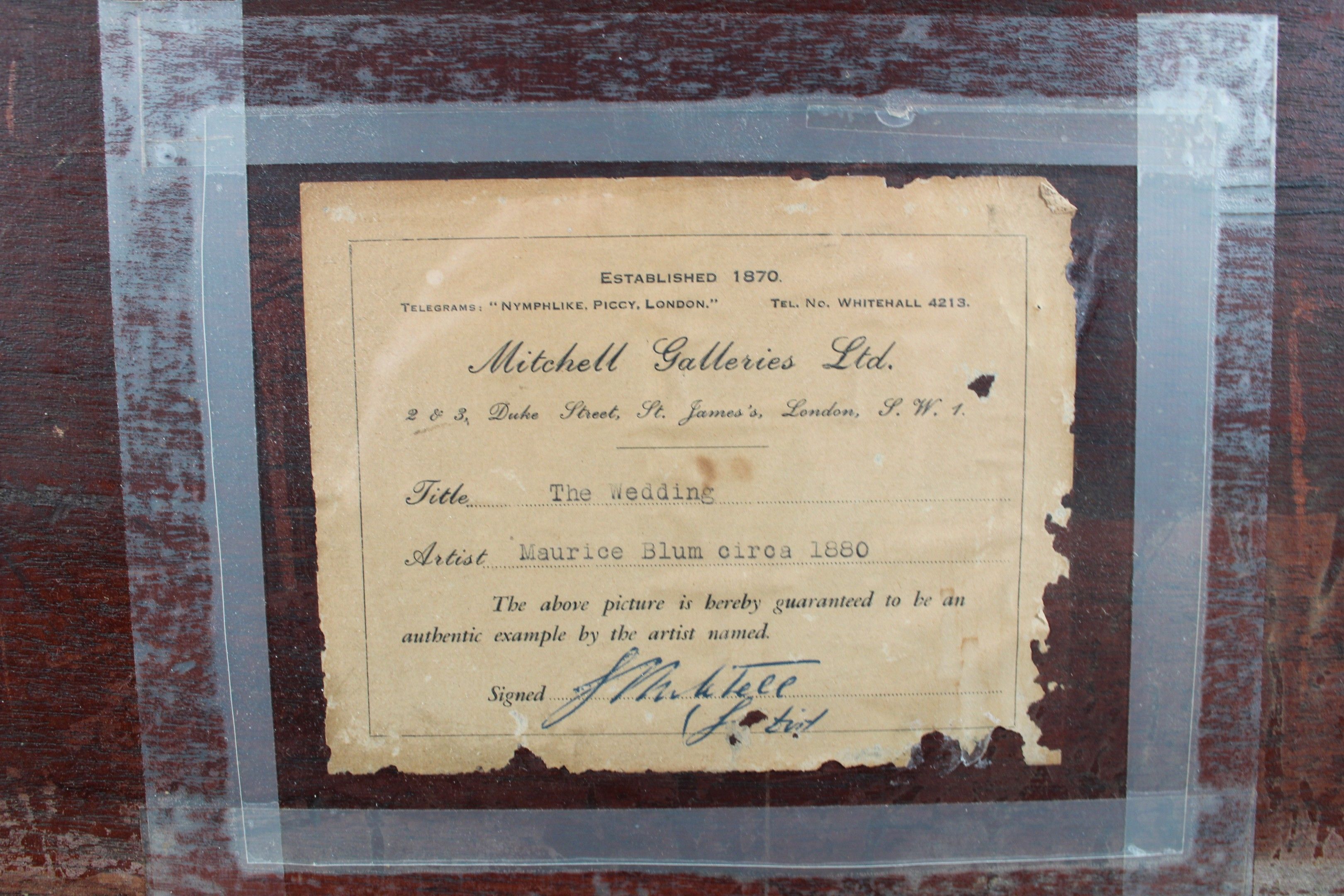Oil on panel. Signed lower left. Mitchell Galleries (London) label on the back.