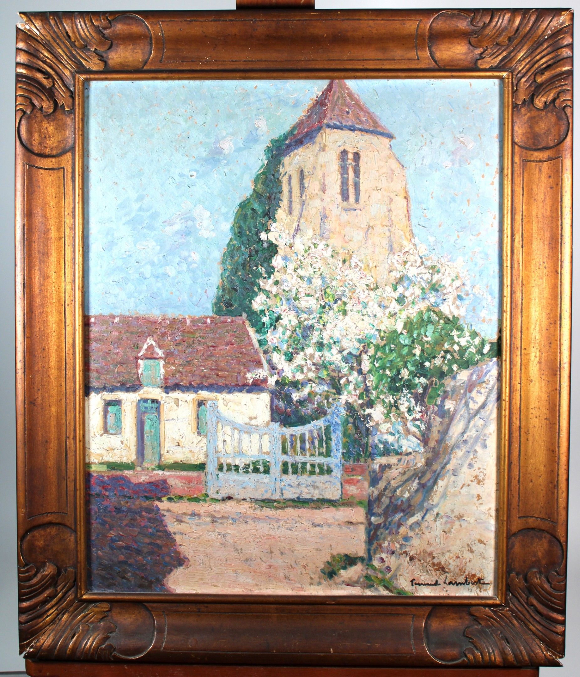 LAMBERT Fernand (1868-1935) Old bell tower and tree in bloom…