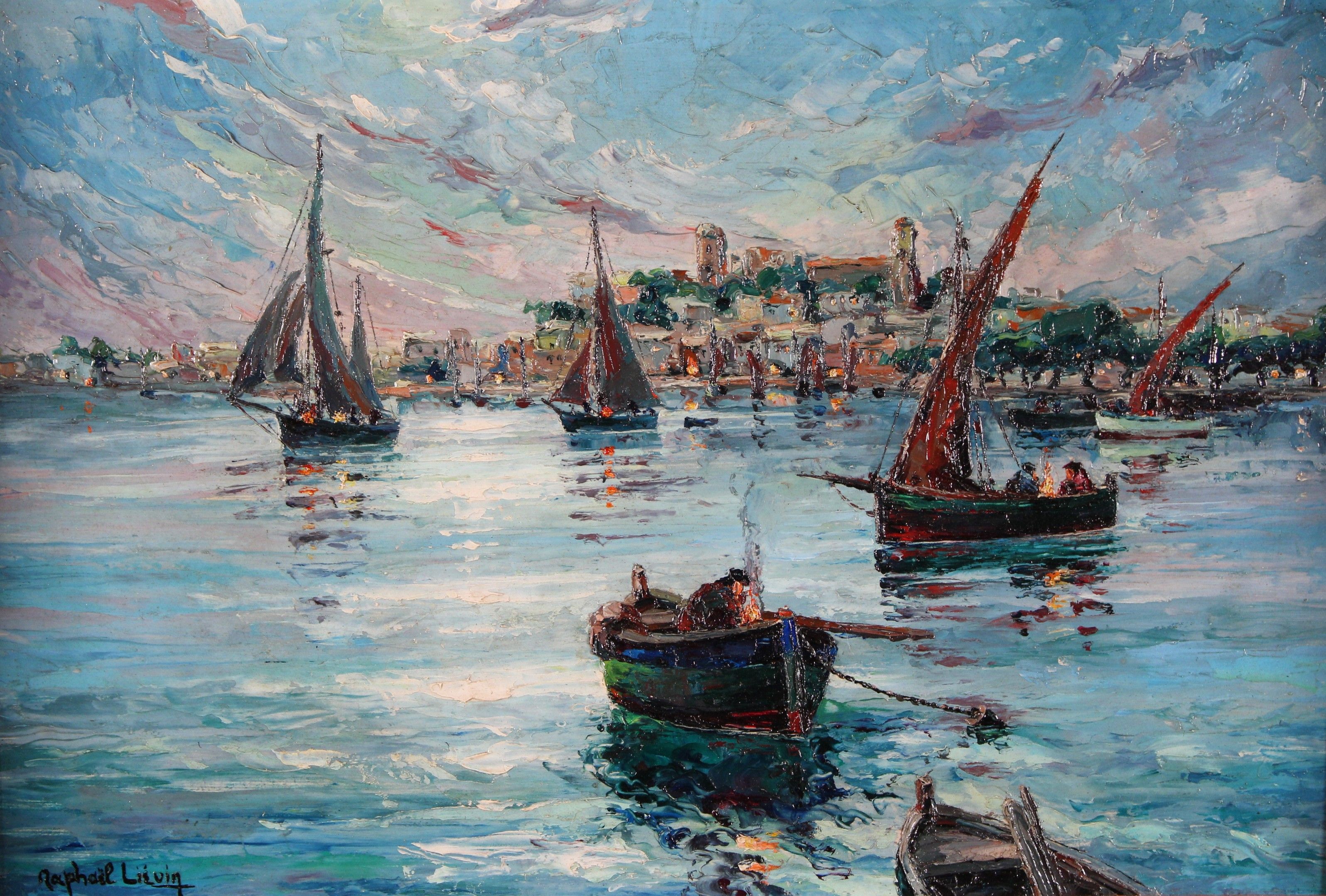 LIEVIN Raphaël (20th century) View of the port of Cannes.