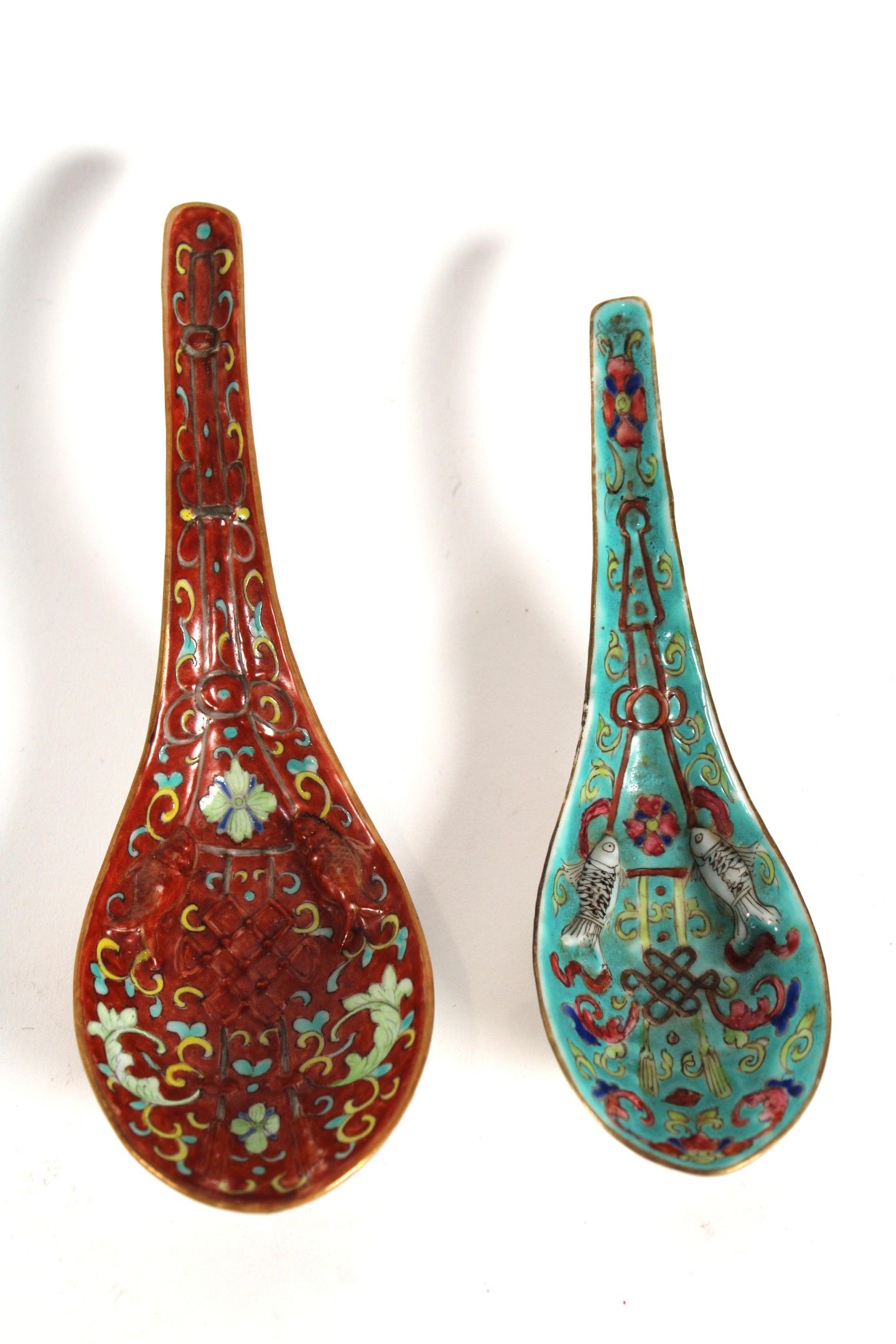CHINA, early 20th century Set of four porcelain spoons decor…