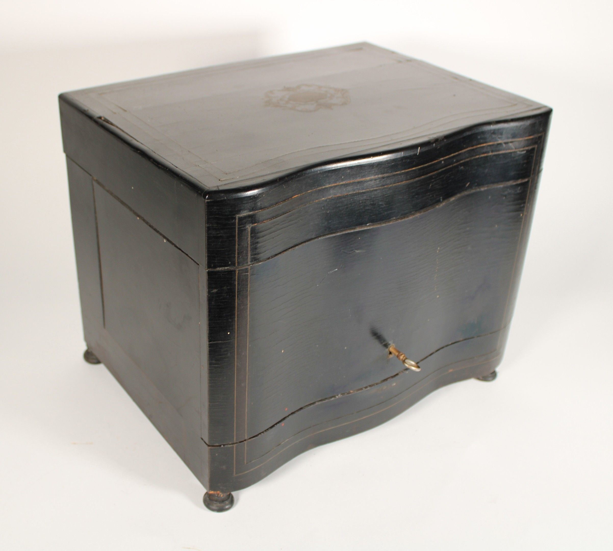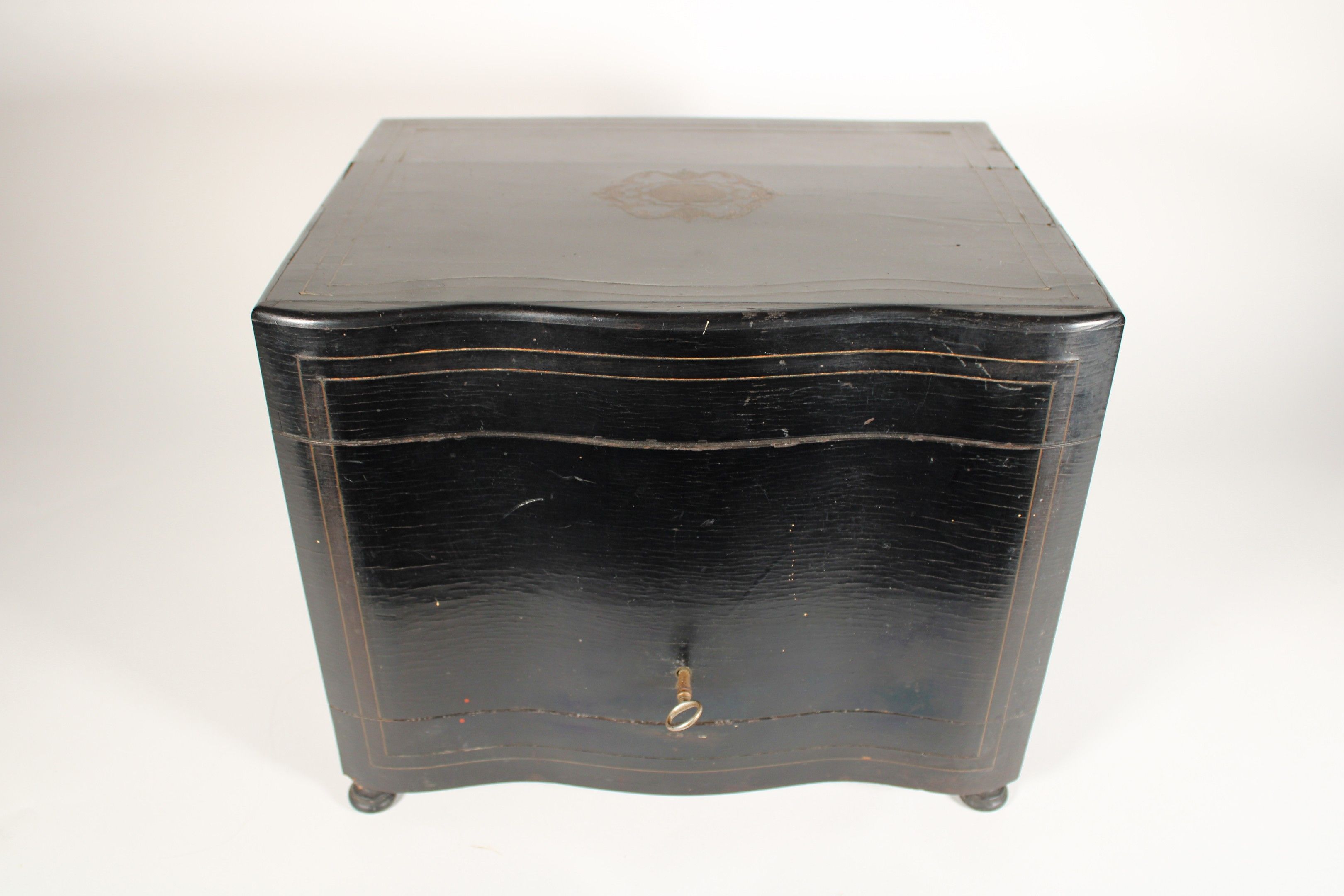 Liqueur cabinet in blackened wood veneer with brass fillet a…