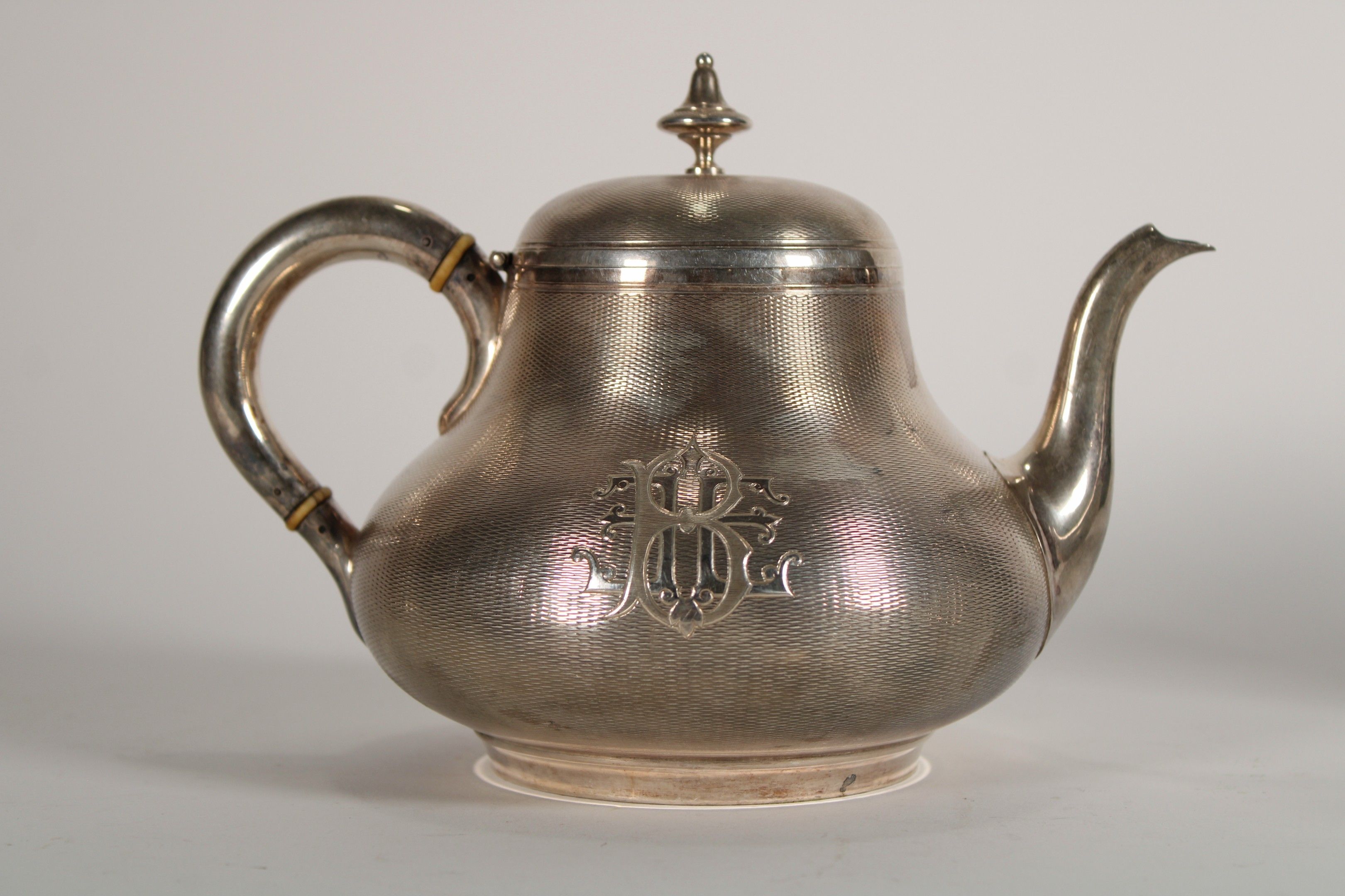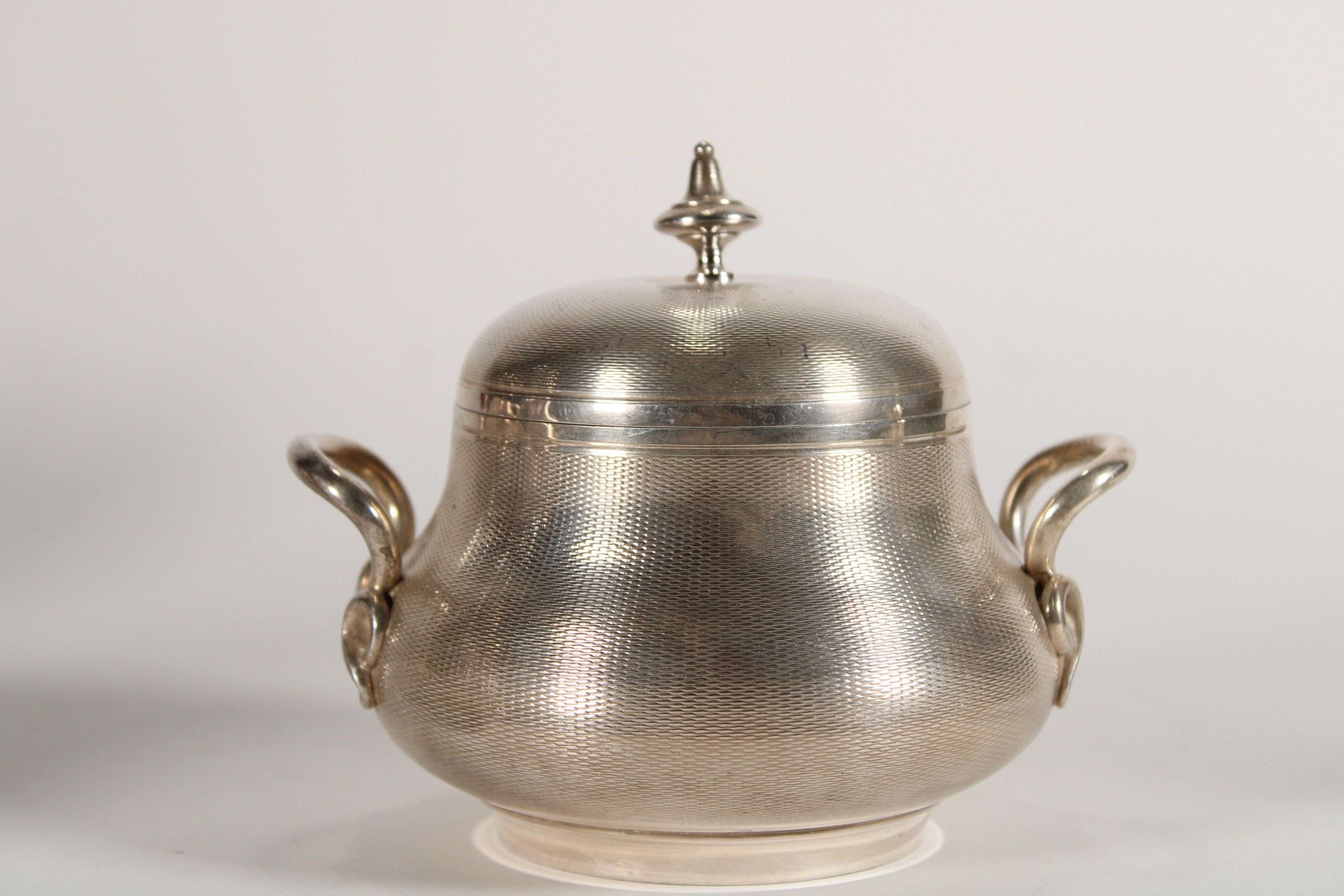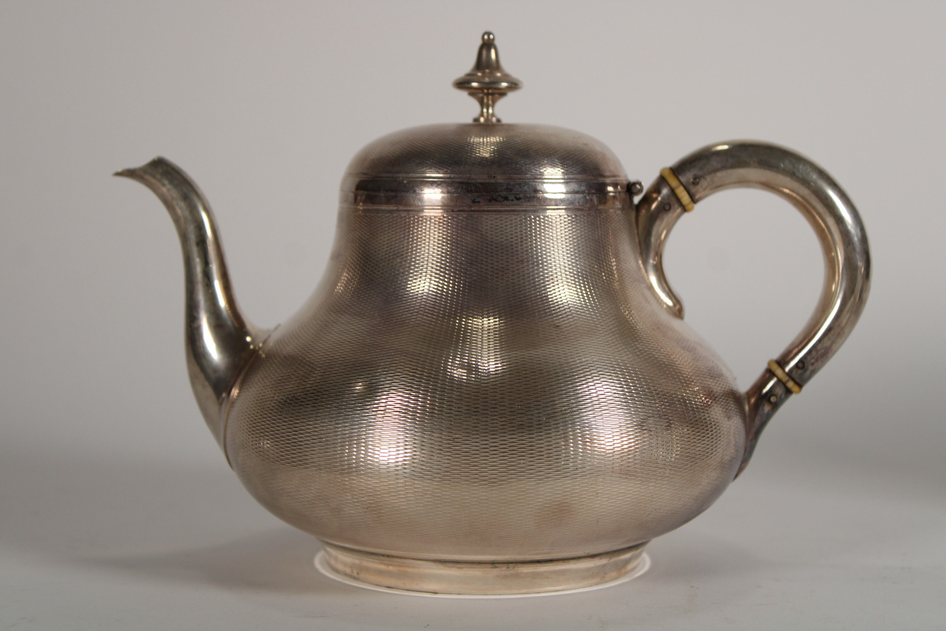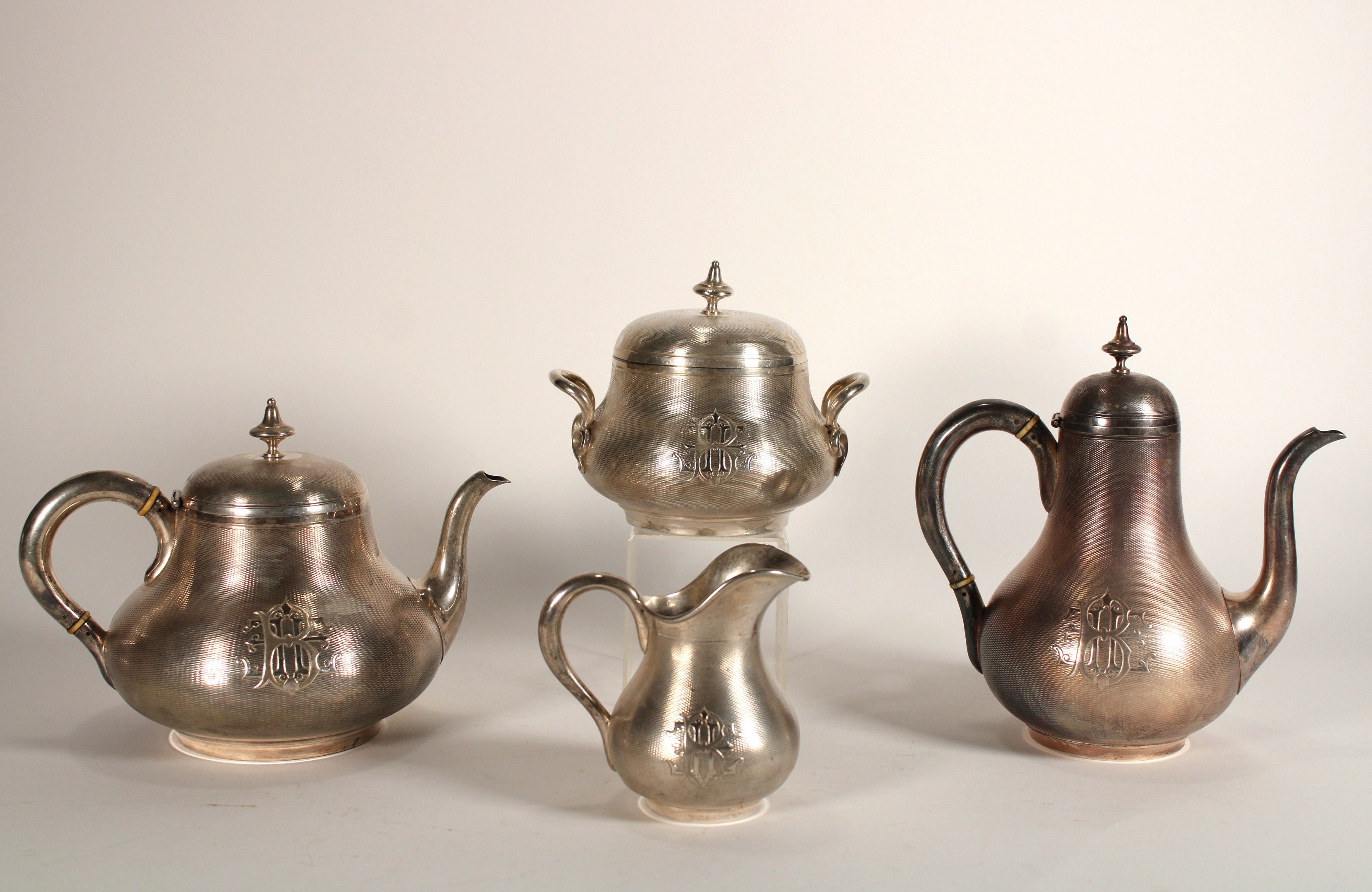 925°° silver tea and coffee set comprising a coffee pot (height: 18.2 cm), a teapot (height: 15 cm), a sugar bowl (height: 12.3 cm) and a milk jug (height: 20 cm). Each piece marked EBE.