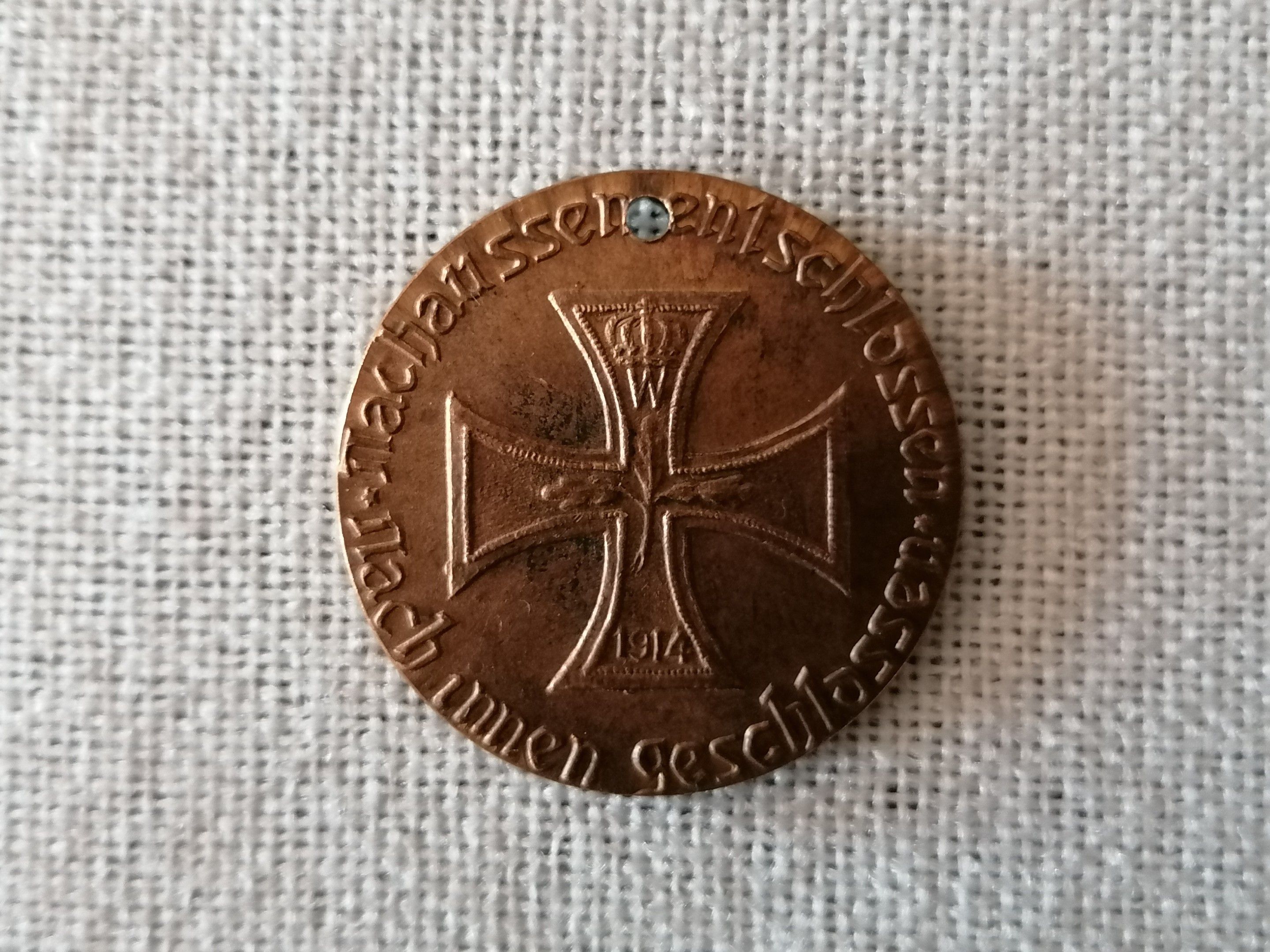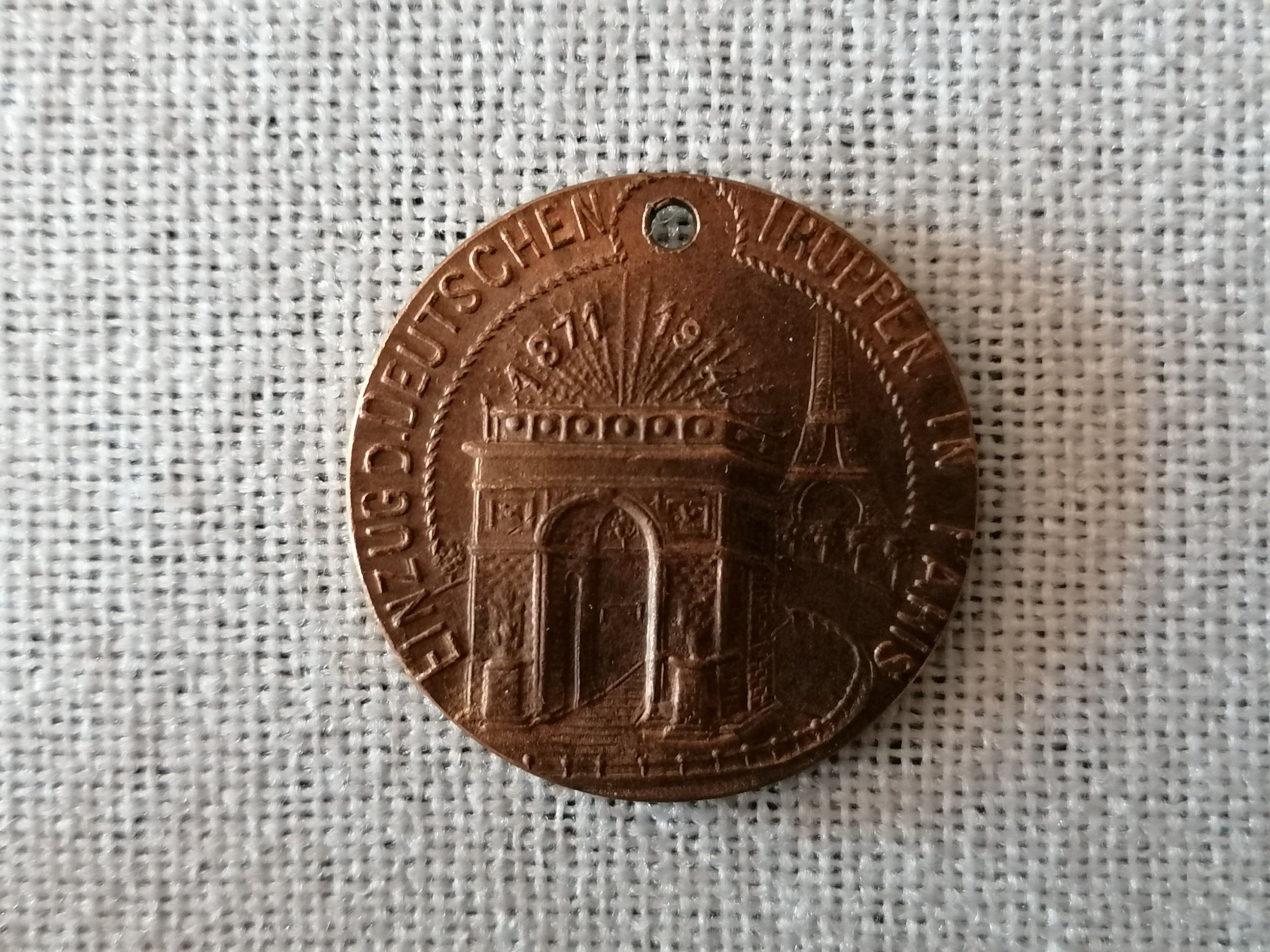 Large lot of 150 tokens commemorating the entry of German troops into Paris in 1914. Bronze examples of the first type, pierced.