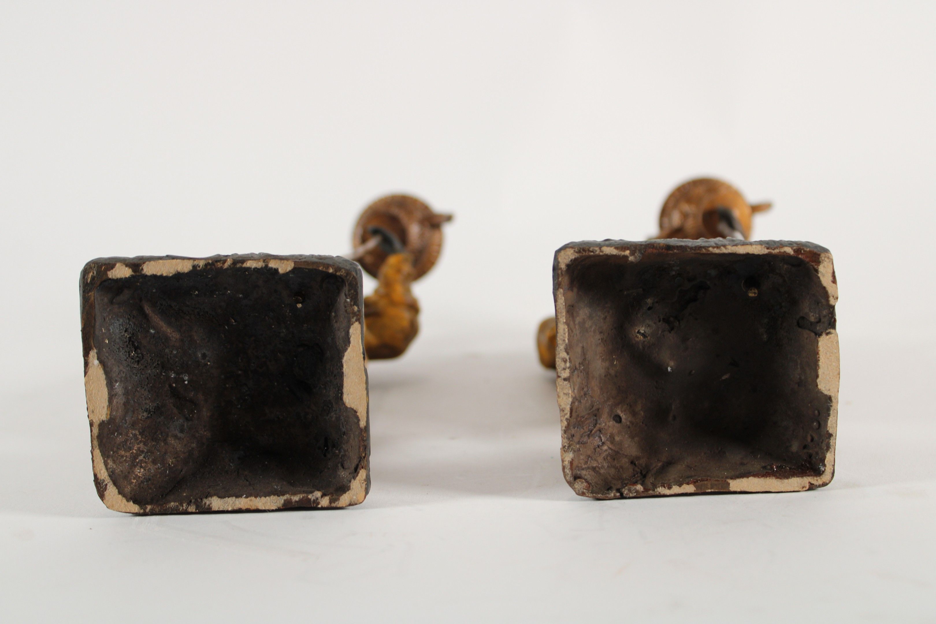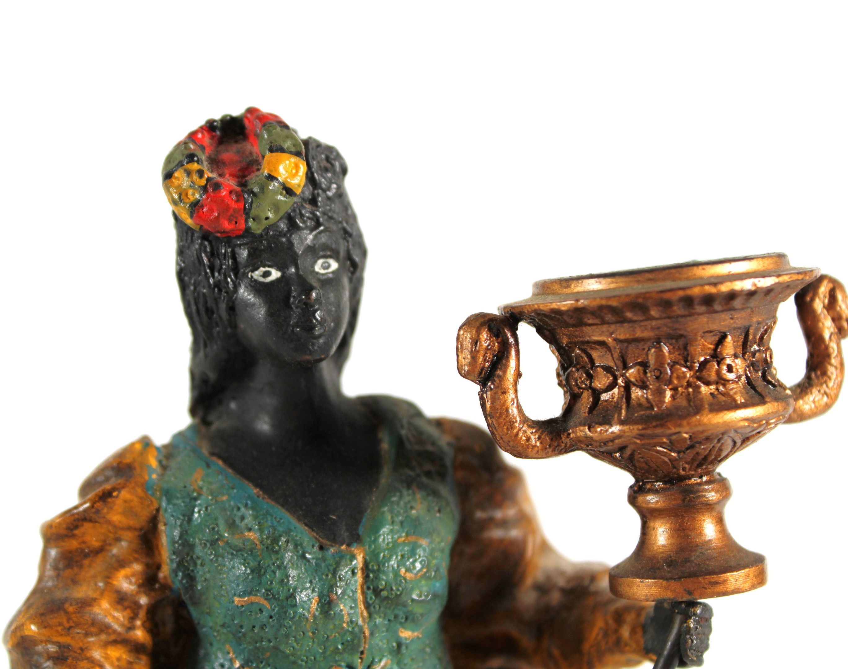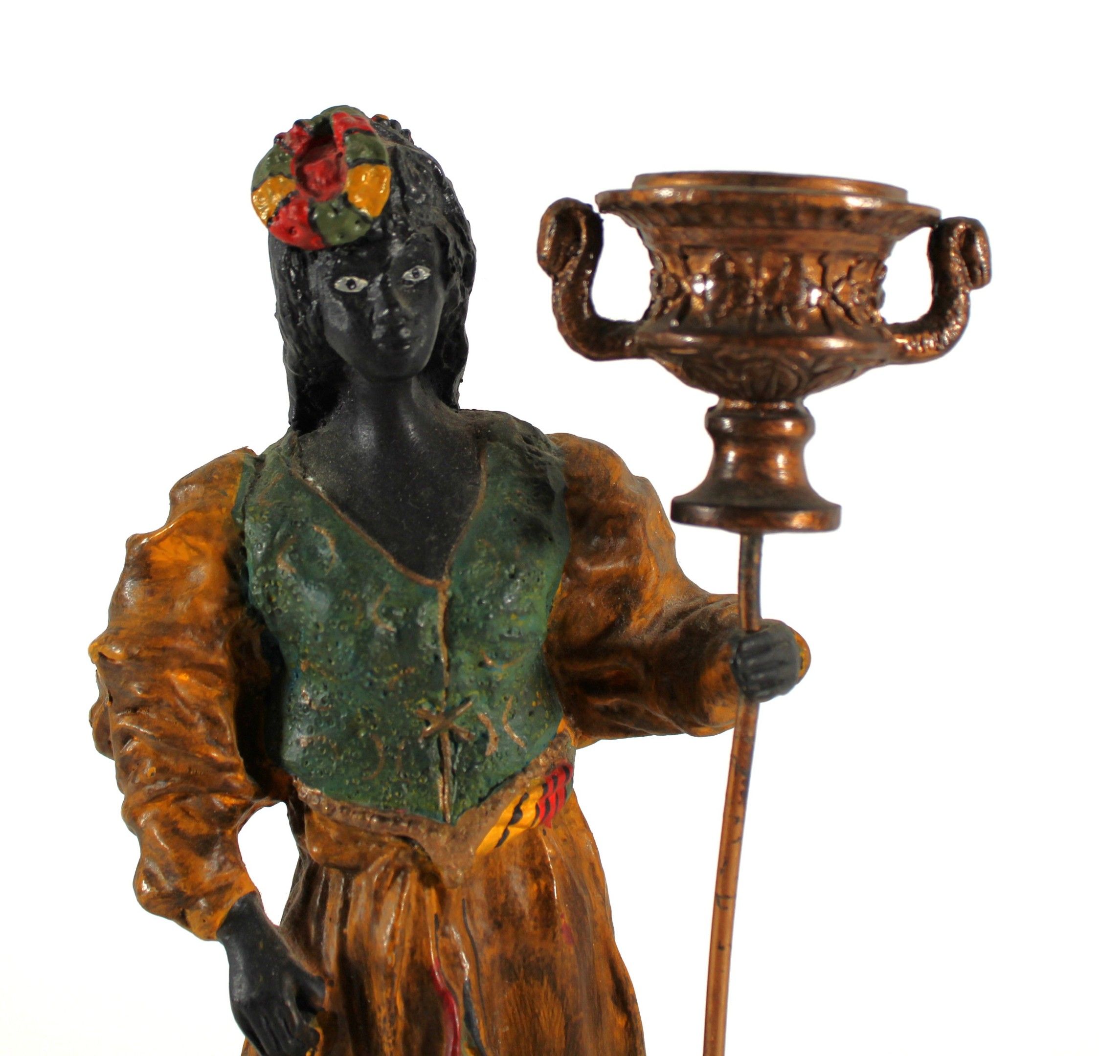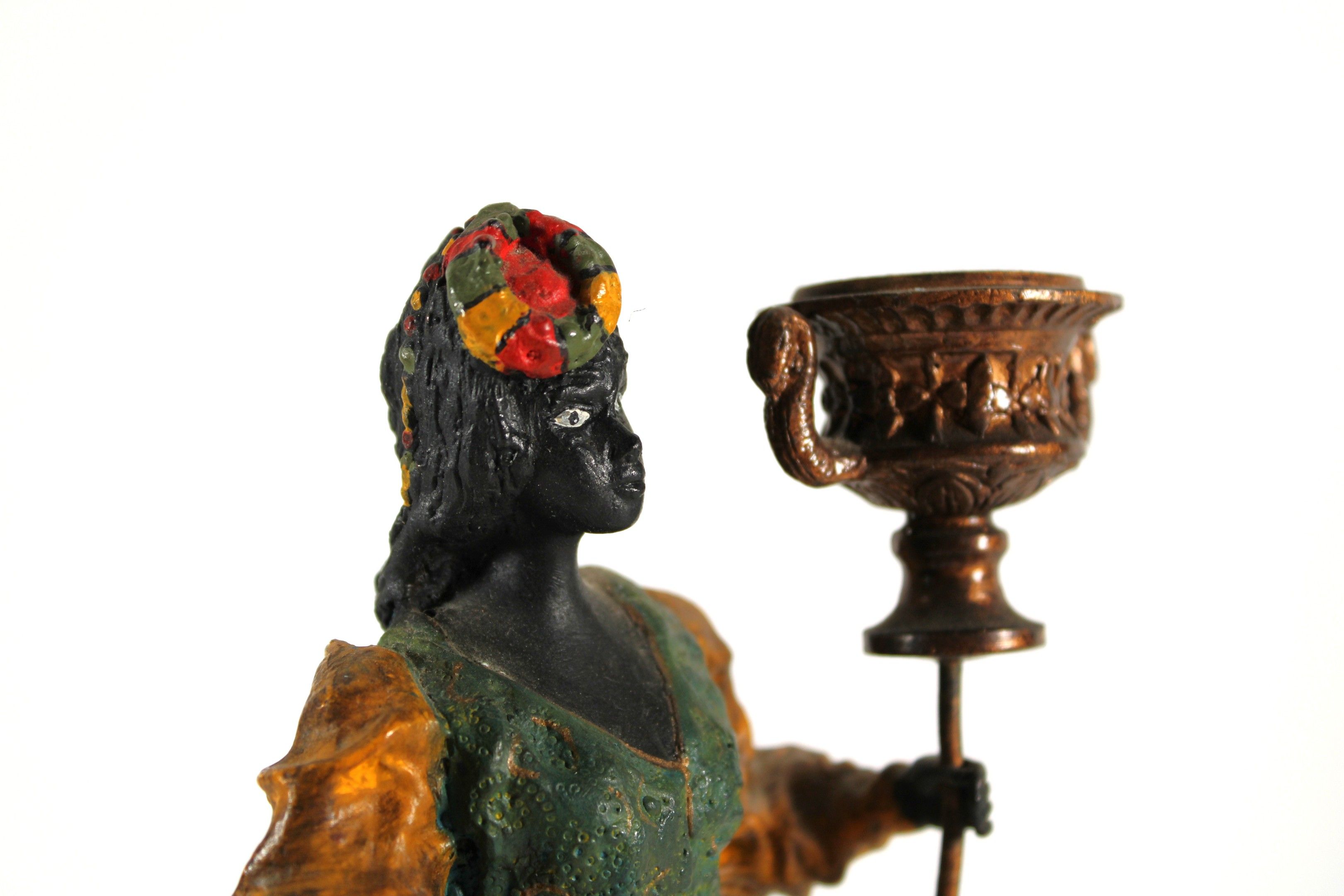 A pair of polychrome bronze candlesticks depicting Nubian women.