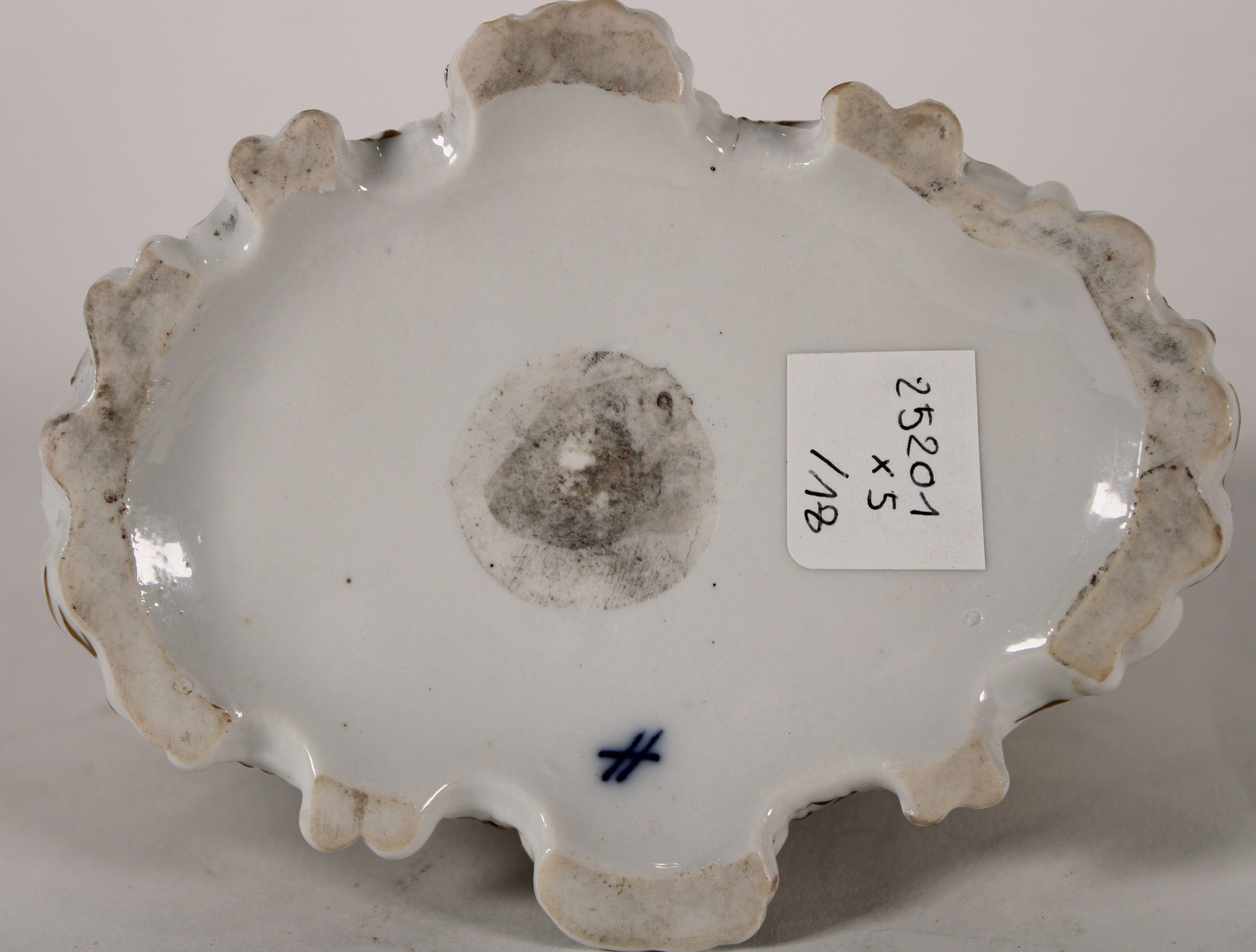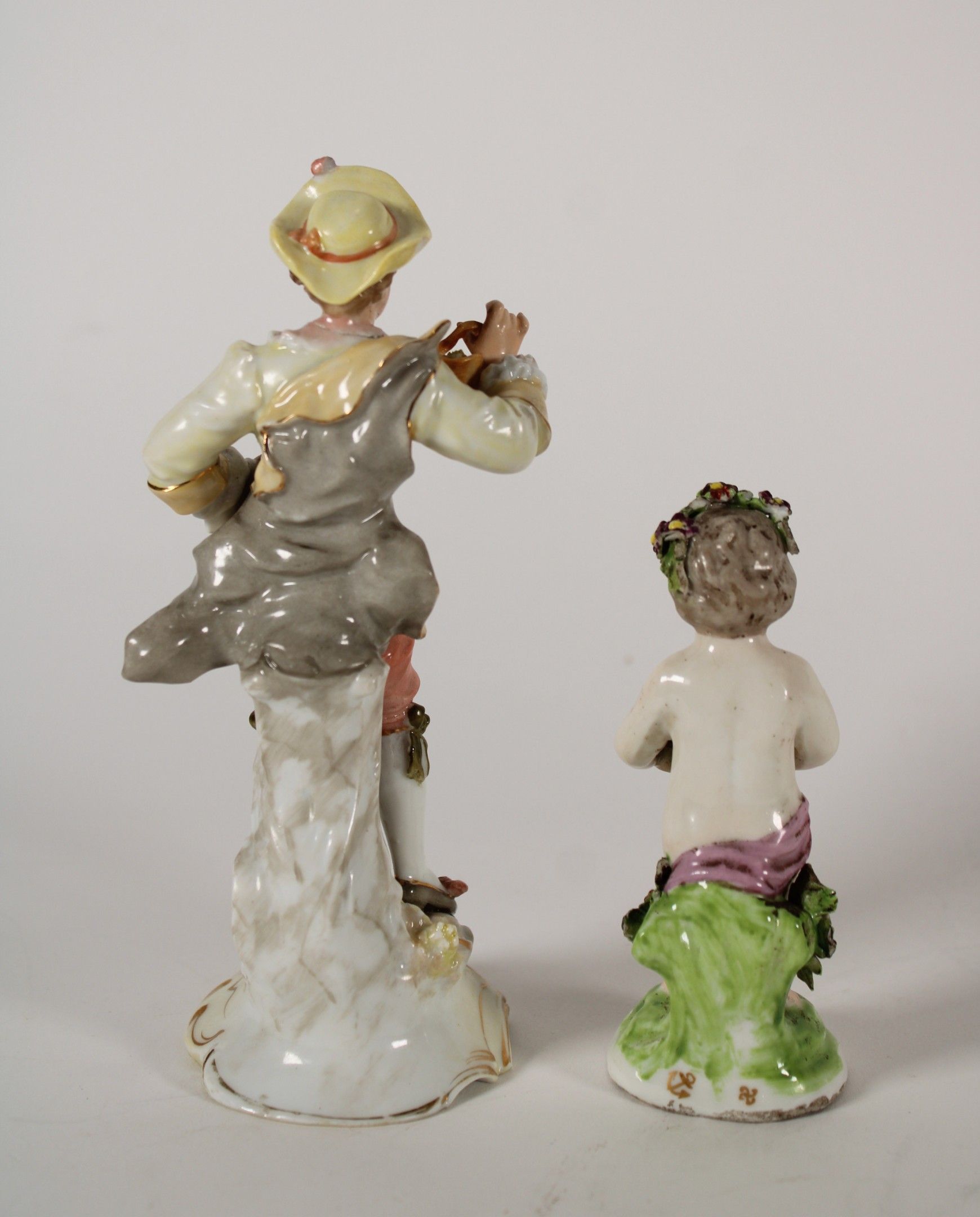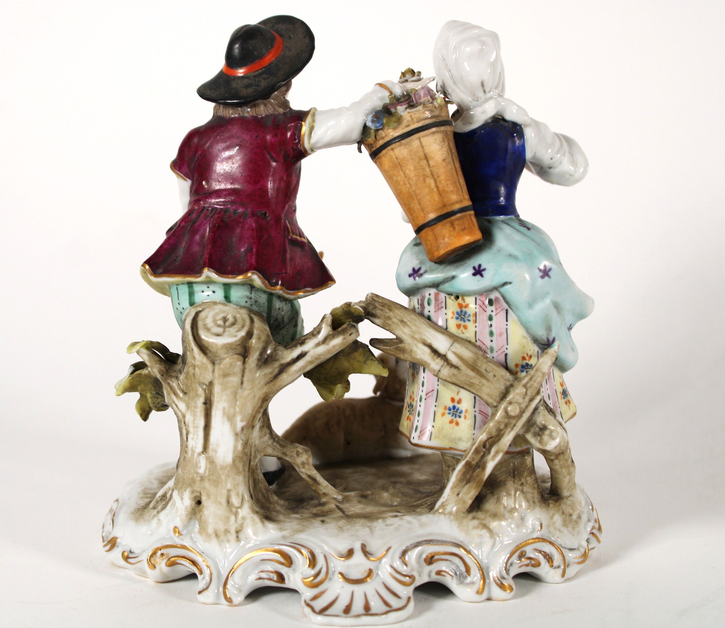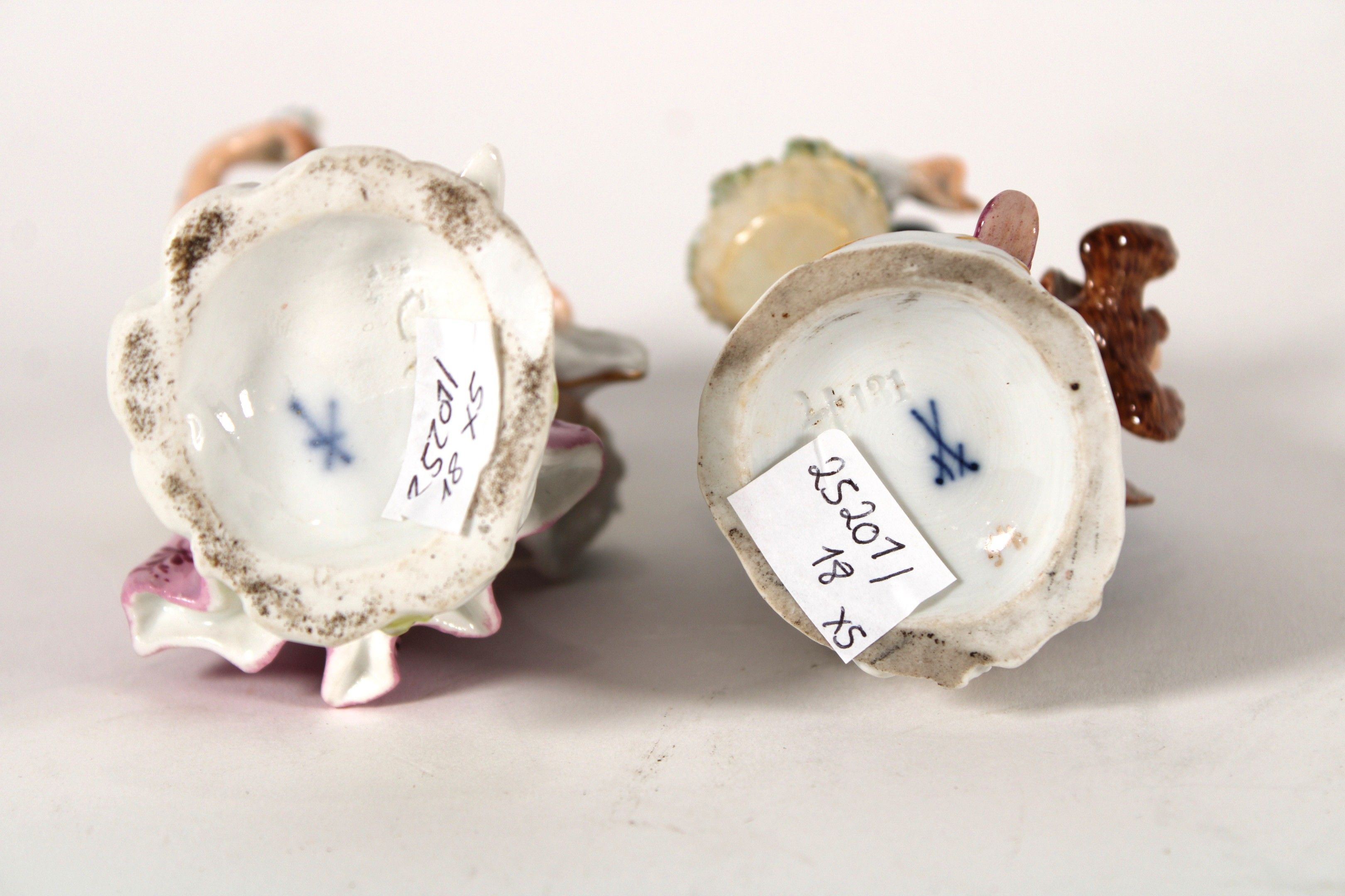- A young man carrying a basket of eggs. Meissen mark and numbers underneath. (accidents to the birds and to the hat). Height : 13,5 cm